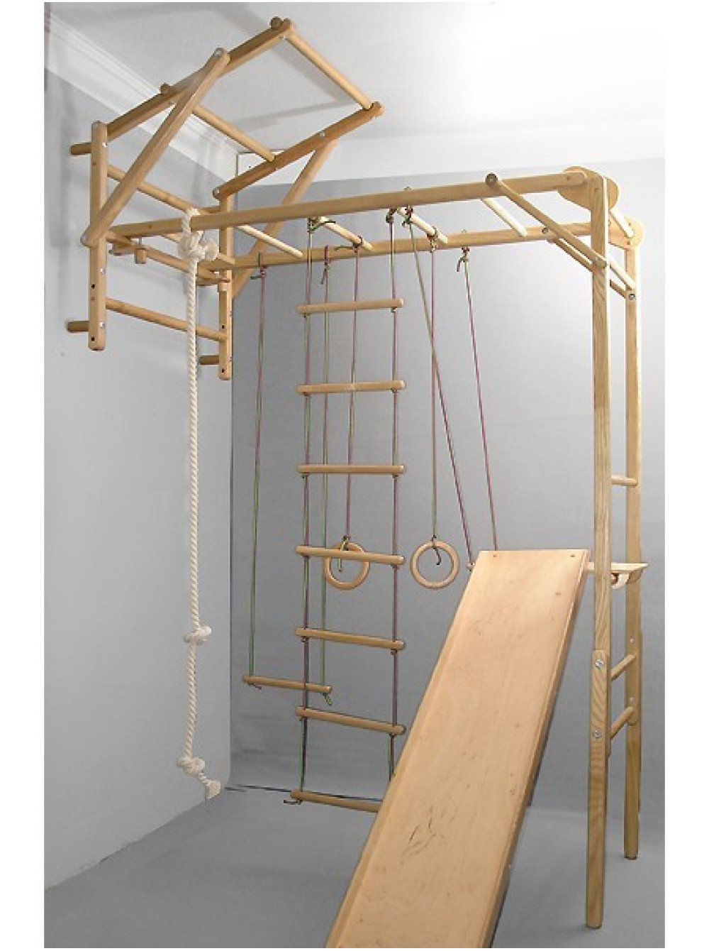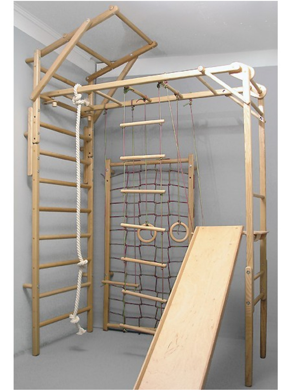 Спортивний комплекс Ліана Люкс бук складається зі шведської стінки, сітки, рукоходу з мотузковим комплектом і гірки. Цей спортивний куточок виготовлений повністю з масиву дерева - бук. Порадуйте своїх дітей відмінним подарунком у вигляді спортивного комплексу Ліана Люкс бук.