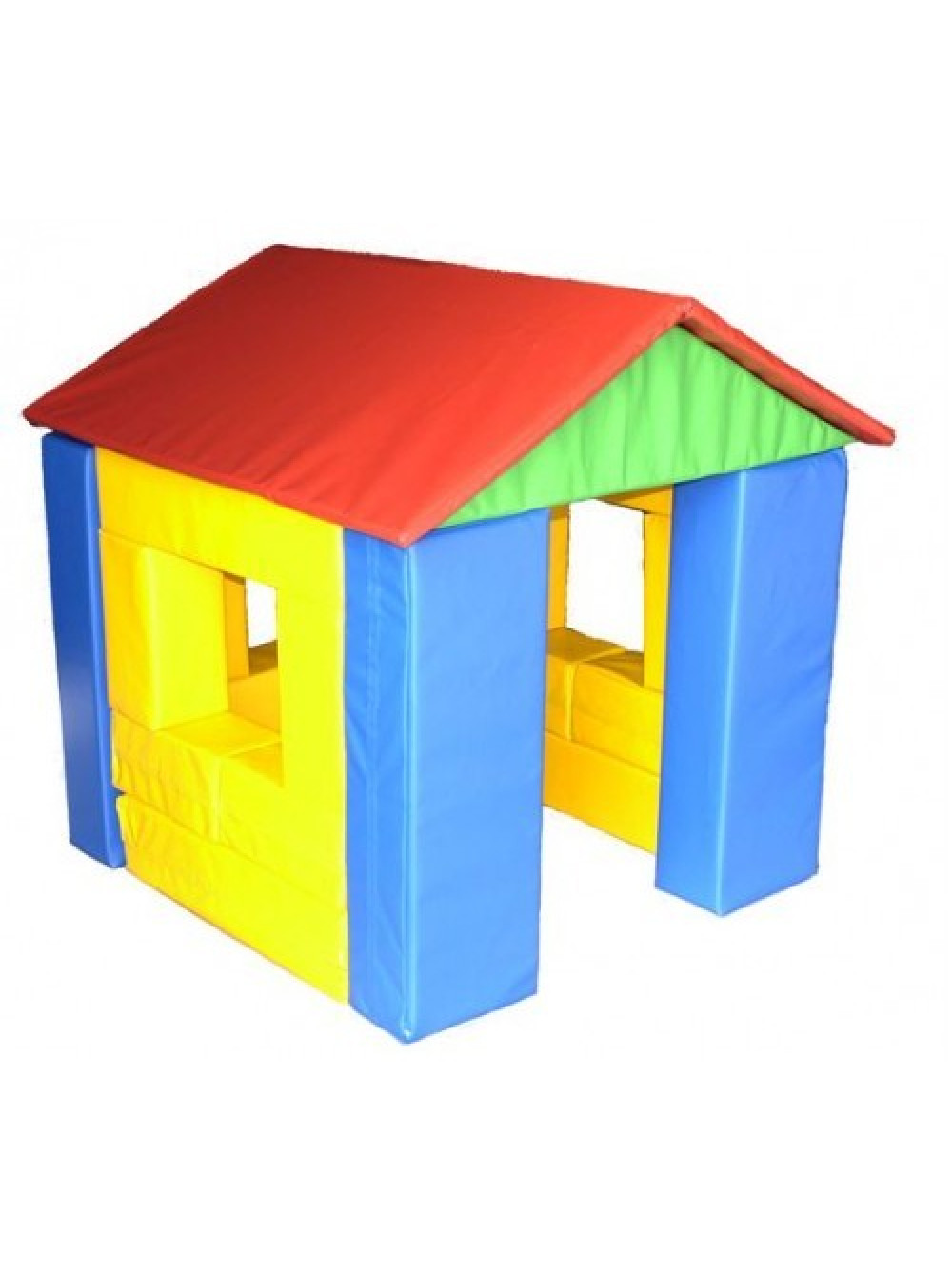 Будиночок для дітей з м'яких модулів - цей ігровий центр має три вікна і двері, що б можна було потрапити всередину приміщення, грати там або ховатися. Яскраві кольори роблять його дуже привабливим для цікавої дітвори. Будиночок розбірний, кожну деталь можливо використати окремо для ігор або просто для відпочинку. Більше того, розібравши будинок на окремі елементи, можна запропонувати дітворі самій побудувати яку-не будь хатинку, адже таке зайняття не менш захоплювальне!