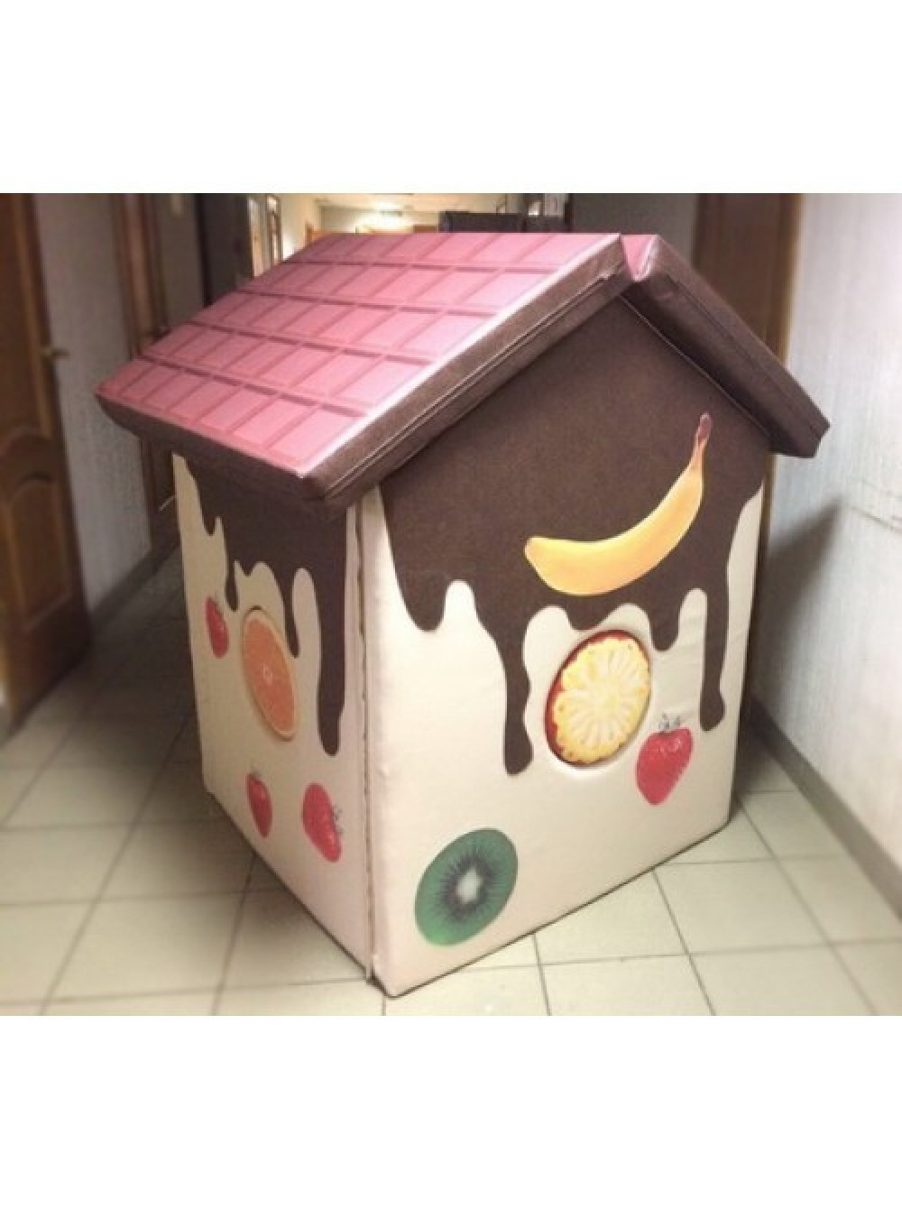 М'який будиночок Фрукти у шоколаді у такому стилі і незвичайною забарвленням у вигляді шоколадної глазурі, що тече може подарувати дітлахам безмежні можливості для смачних пригод. Можливості подібних ігор не обмежені, як втім, і світ дитячих фантазій і винахідливості.