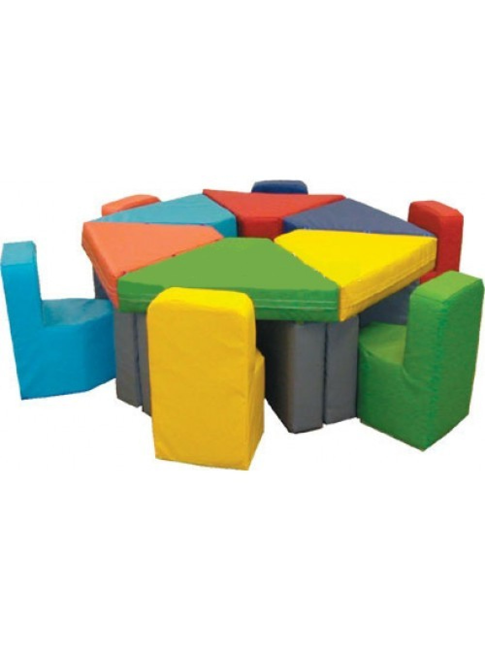 Комплект ігрових меблів Квіточка-різнокольорова-2, міцний, багатофункціональний, ідеально підходить для облаштування ігрових зон. У дитячих садках, залах очікування, в супермаркетах, для зручності батьків, які збираються робити покупки.