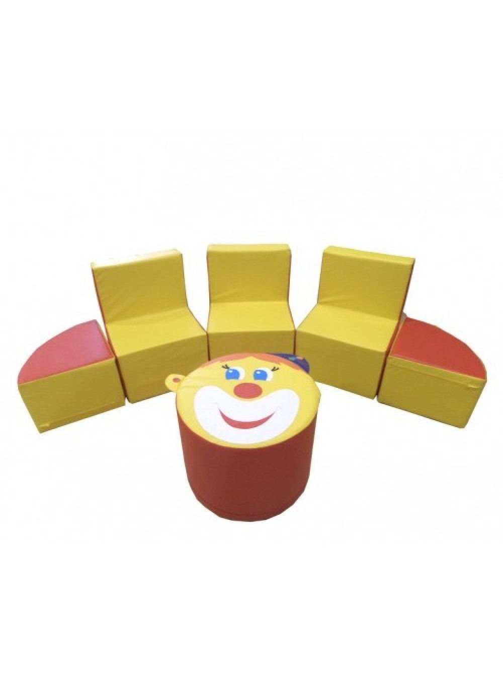 Комплект м'якої ігрової меблів Клоун - використовуйте його в приміщенні або на відкритому повітрі, в будь-якому випадку він зручний і універсальний. Його можна розмістити як гарнітур, стільчики зі столом і пуфиками, так і окремо в потрібних для Вас місцях і навіть у різних приміщеннях.