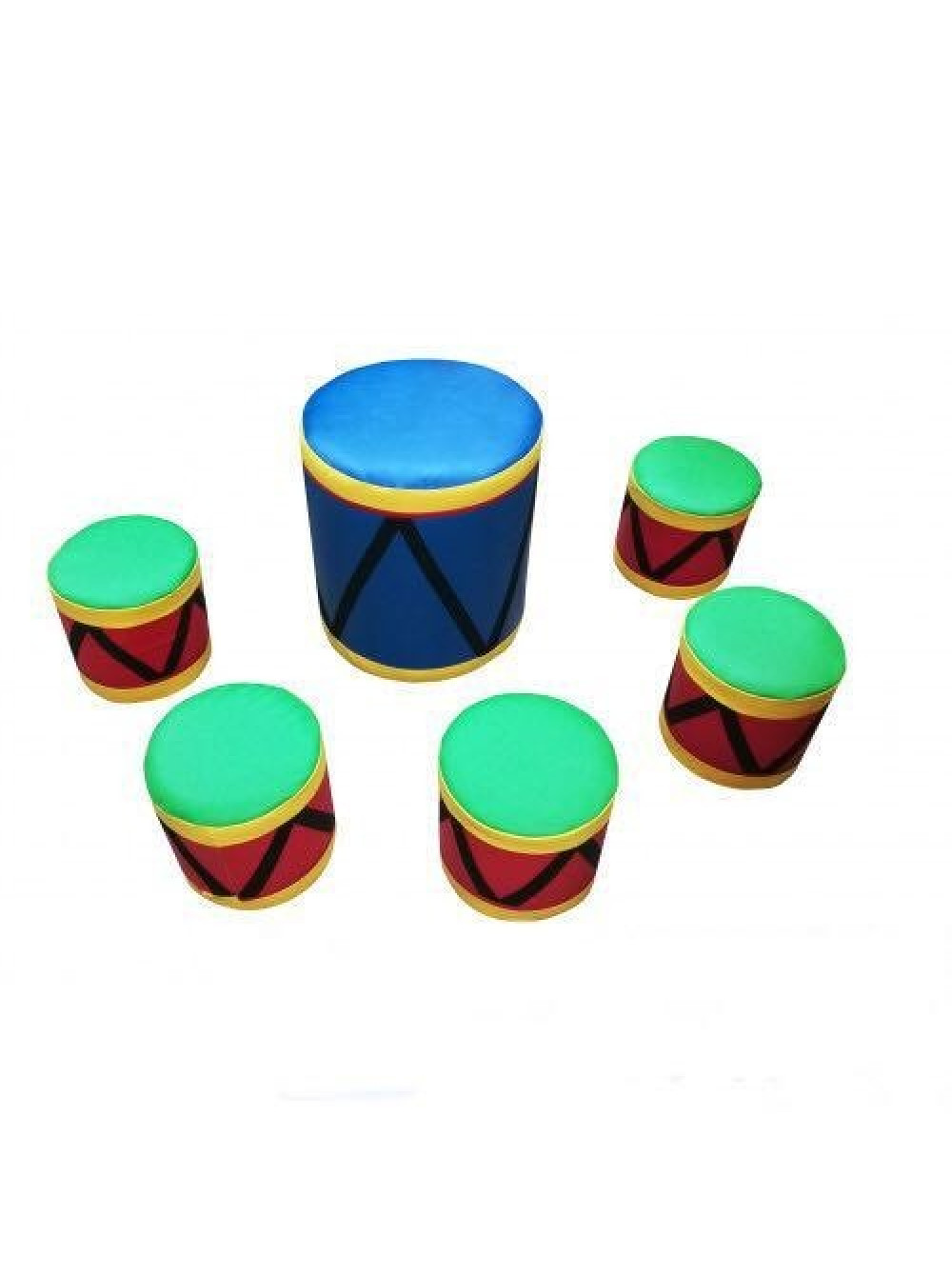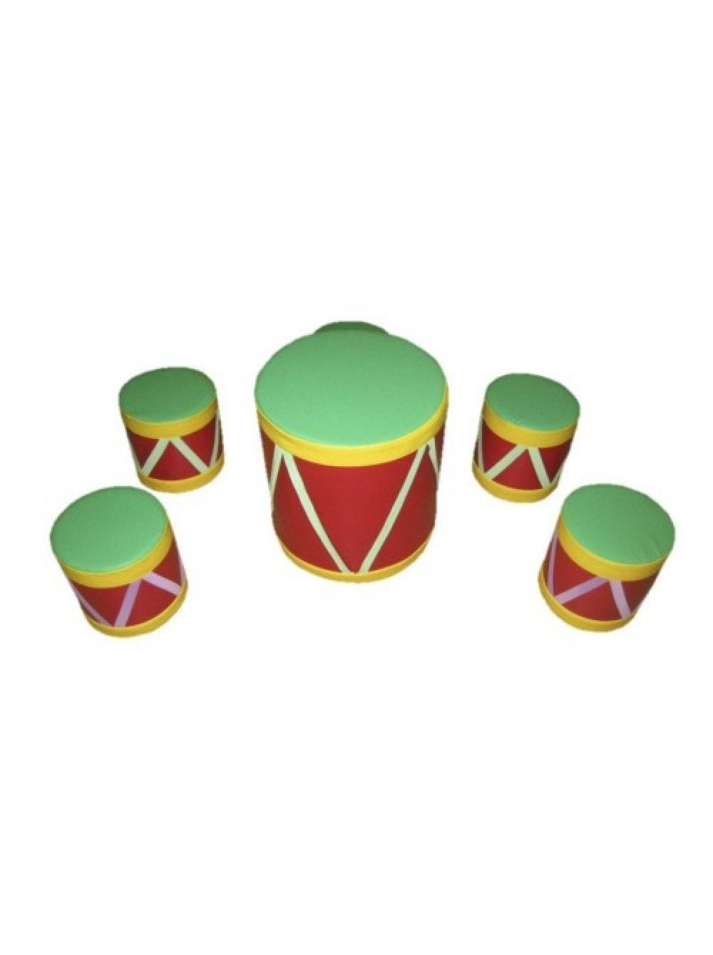 Набір м'яких меблів Барабани - недорогий і досить бюджетний варіант для облаштування ігрової зони. Його елементи можна розмістити як комплектом, так і незалежно один від одного. Таким чином, дитина сидітиме, гратиме або читатиме не лише в одному, строго виділеному місці в компанії інших дітей, але і самf зможе організувати собі індивідуальне місце для відпочинку або якого-небудь зайняття.