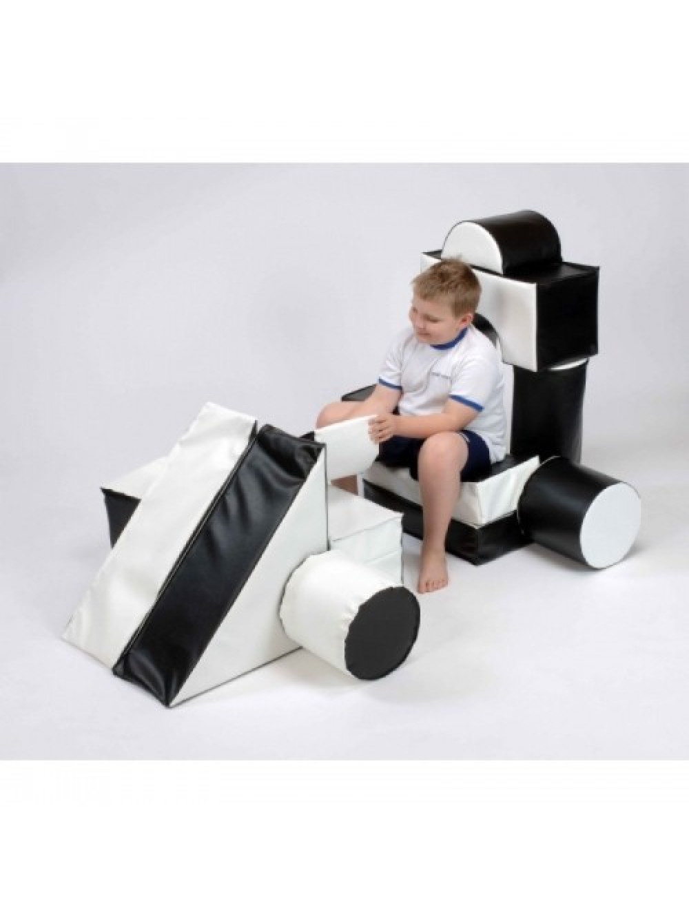 Вся справа в тому, що цей модульний набір не тільки можна скласти в цікаву м'яку іграшку для хлопчиків і дівчаток. Завдяки спокійній і класичній кольоровій чорно-білій гамі подібні речі здатні забезпечити високий контраст візуальних стимулів для дітей, особливо тих, у кого проблеми із зором. Як правило, контрастні кольори сприяють концентрації і напрузі і, як наслідок, поліпшенню зору.
