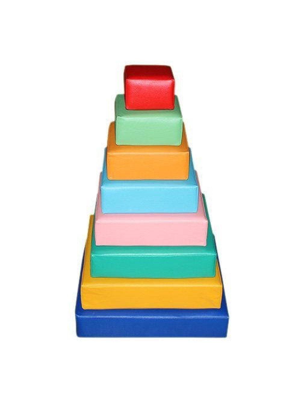 Комплект м'яких фігур Піраміда виготовлений з кольорових, однакових за геометричною формою, але різних за розмірами м'яких матів у вигляді квадратів.