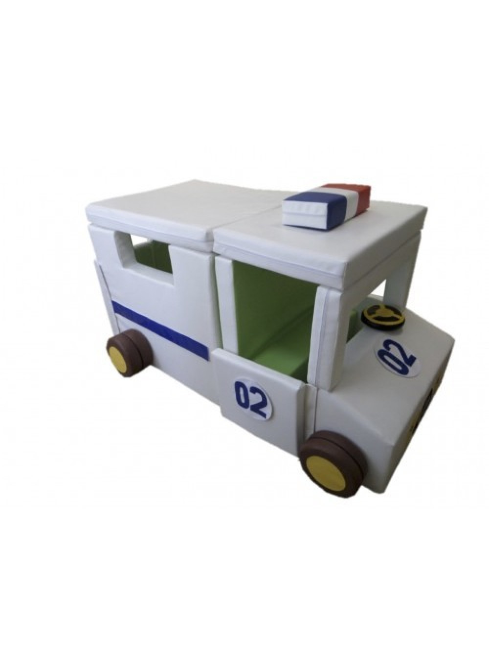 Конструктор-трансформер модульний Машина поліцейська - іграшковий транспортний засіб для поліцейського реагування на будь-які протиправні дії з м'яких модулів, який можна скласти для тематичної гри і розкласти на складові для інших потреб - грати на цих матах сидячи або лежачи, для створення нової конструкції.