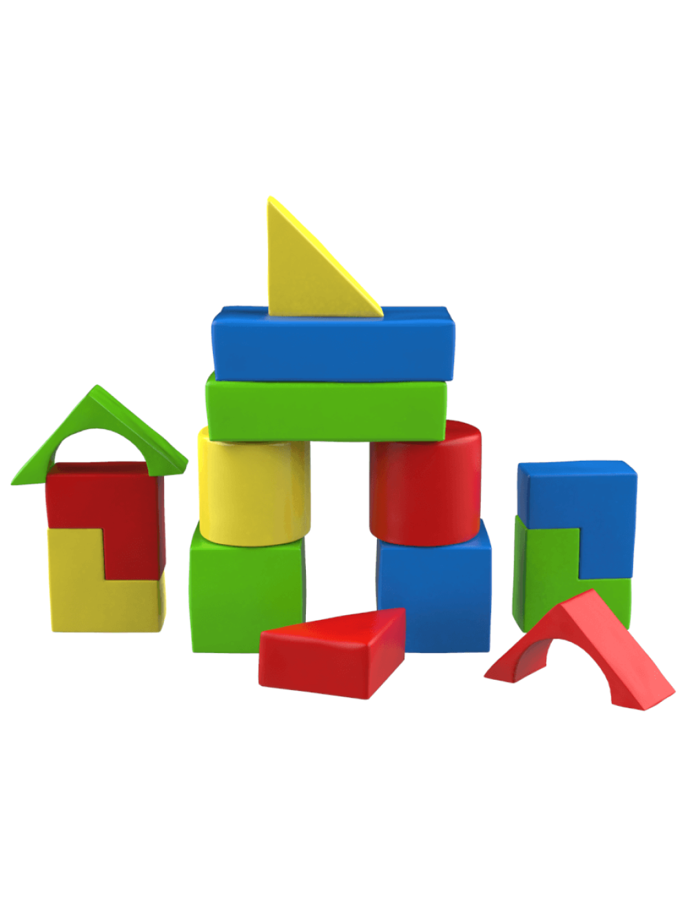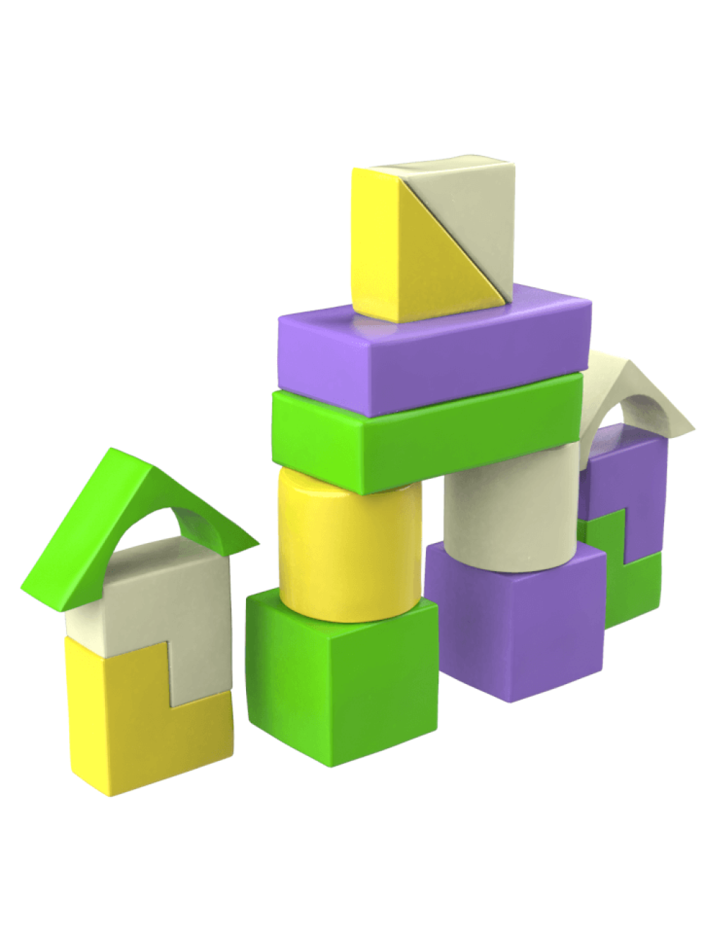 Конструктор з м'яких модулів Будівельник-6 mini - це набір різноманітних об'ємних геометричних фігур з шести найменувань в яскравій кольоровій гамі. У комплекті 14 м'яких модулів.