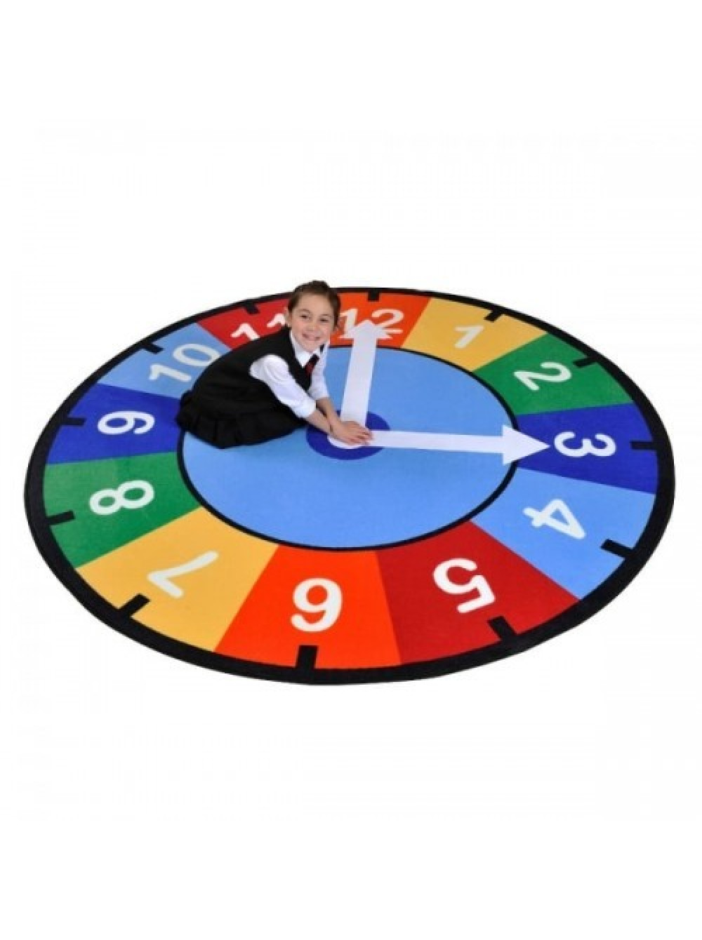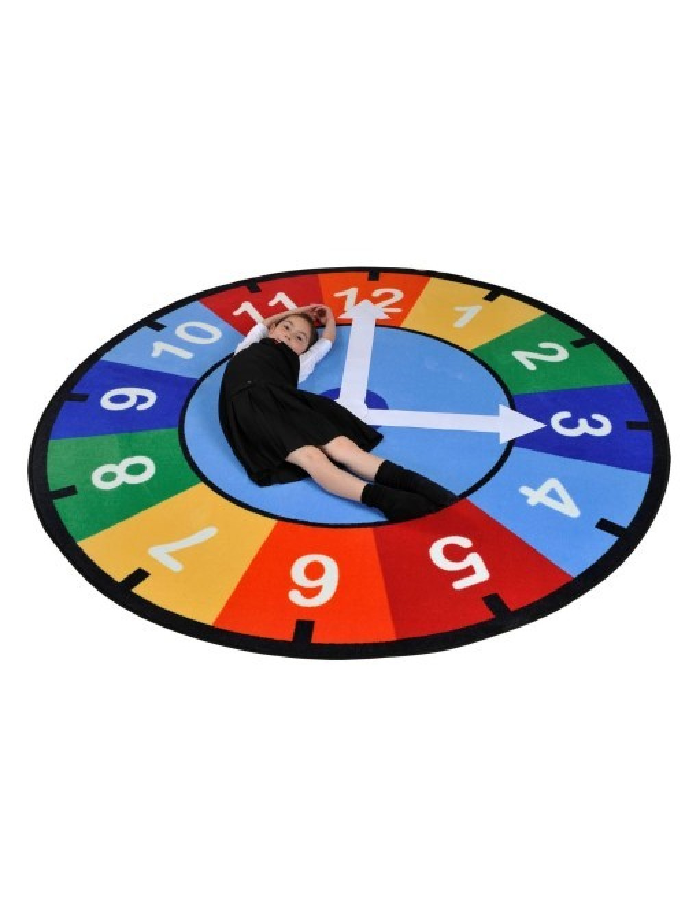 Учбовий гімнастичний мат Час виконаний у виді дуже простого і всім знайомого предмета - годинник. Проте в цій лаконічній формі вмістив в себе усі необхідні елементи для навчання дітей : цифрам, кольорам і звичайно ж розумінню і визначенню часу.