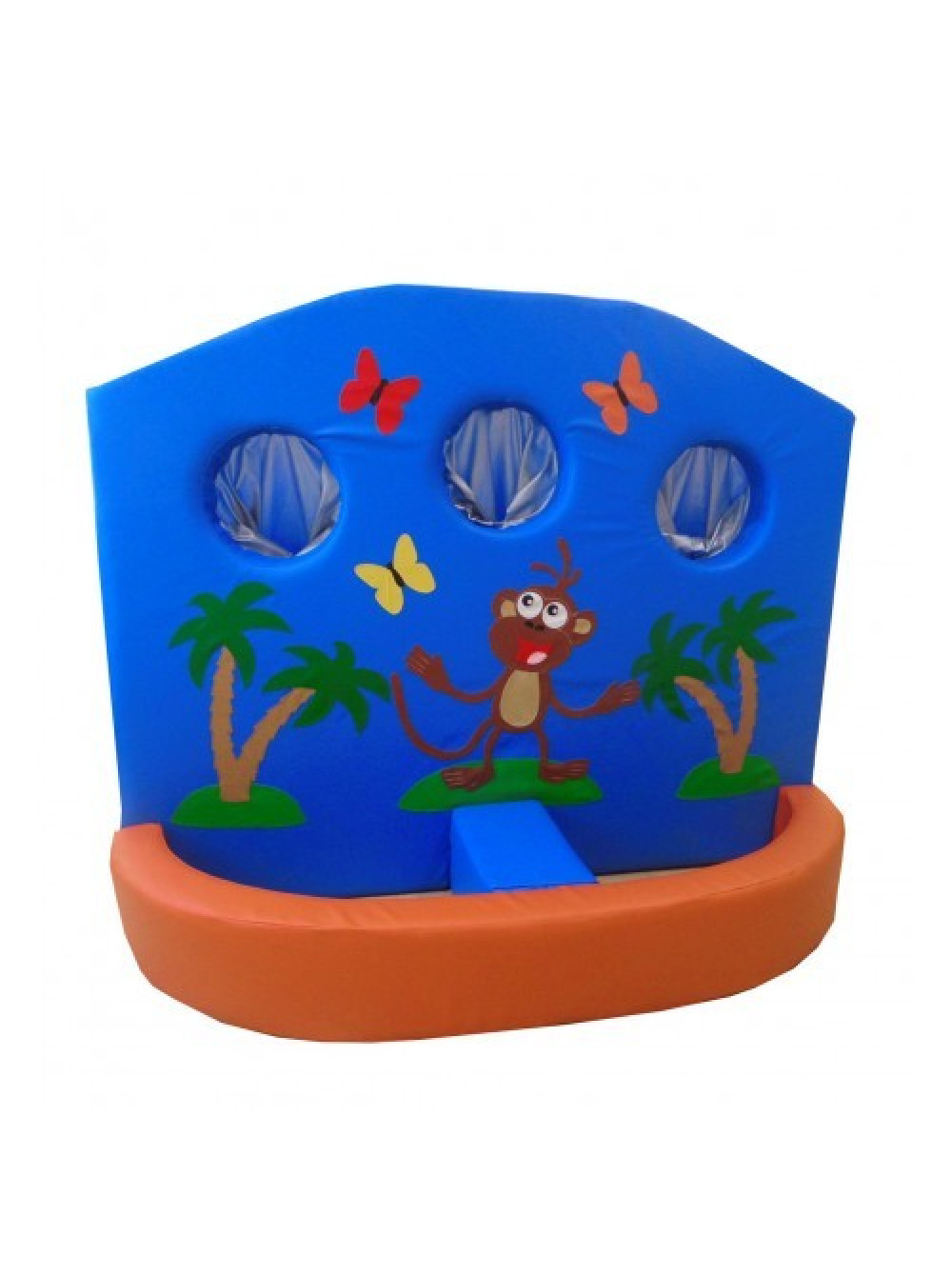 Модульний тир Мавпочка забавний, але в той же час практичний і недаремний винахід для розваг і змагань по закиданню м'яких кульок в яскраву і кольорову тематичну картинку з отворами. Перед стінкою тиру є невелика лунка для м'ячиків, які не потрапили в ціль, а за стінкою - спеціальна сітка, щоб уловлювати м'ячі, які таки потрапили в мішень. Все дуже просто, зайняття неймовірно захоплююче, час за ним проходить непомітно, особливо коли гравців декілька.