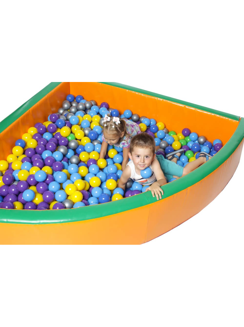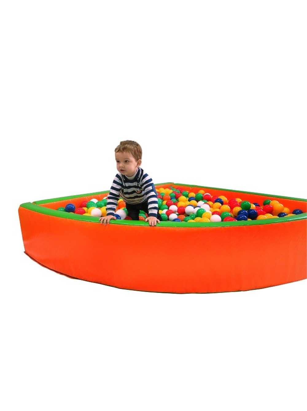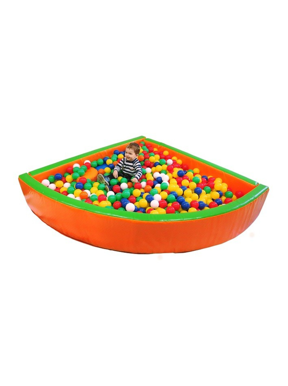 Виріб виконаний у формі кута, в яскравих кольорах, дуже привабливий зовні і приємний на дотик. Басейни виготовлені з ПВХ тканини і наповнені поролоном,що робить ігри дітвори в них комфортними та безпечними. Використовувати цей чудовий предмет можна як у приміщенні, так і надворі. Конструкція володіє високим ступенем зносостійкості, дуже зручна в користуванні ( її можна легко переміщати) та гігієнічна, в будь-який момент її можна вимити або протерти вологою серветкою.