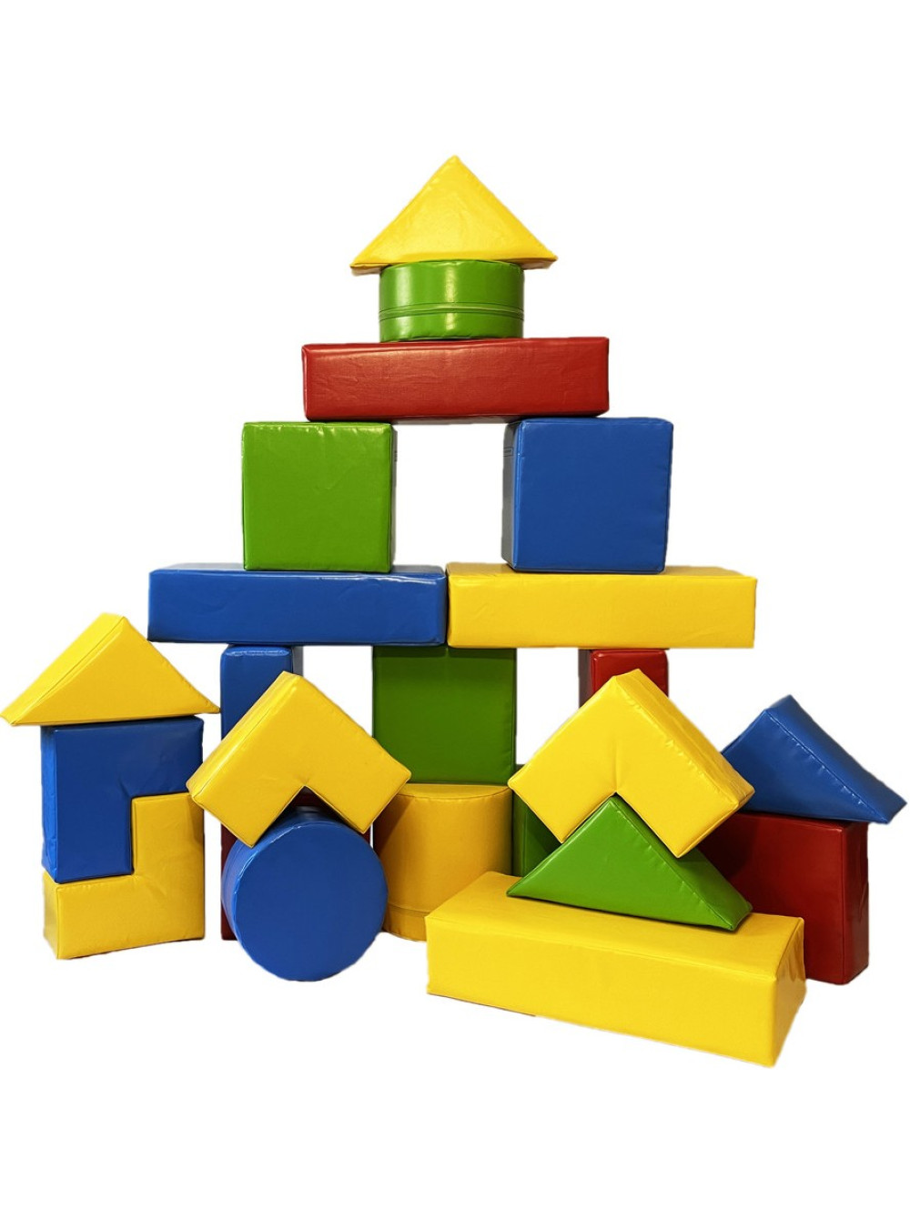 Набір м'яких форм середніх розмірів, що поєднує функціональність і креативність, дає можливість дітям створити широкий спектр тематичних ігор. Різнобарвні яскраві блоки задіють і розвивають візуальне сприйняття і розпізнавання кольору.