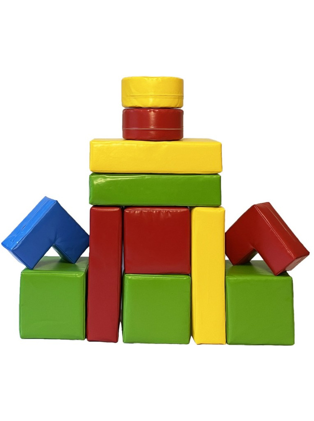 Набір м'яких форм середніх розмірів, що поєднує функціональність і креативність, дає можливість дітям створити широкий спектр тематичних ігор. Різнобарвні яскраві блоки задіють і розвивають візуальне сприйняття і розпізнавання кольору.