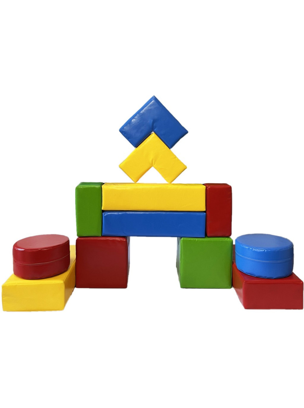 Набір м'яких форм середніх розмірів, що поєднує функціональність і креативність, дає можливість дітям створити широкий спектр тематичних ігор. Різнобарвні яскраві блоки задіють і розвивають візуальне сприйняття і розпізнавання кольору.