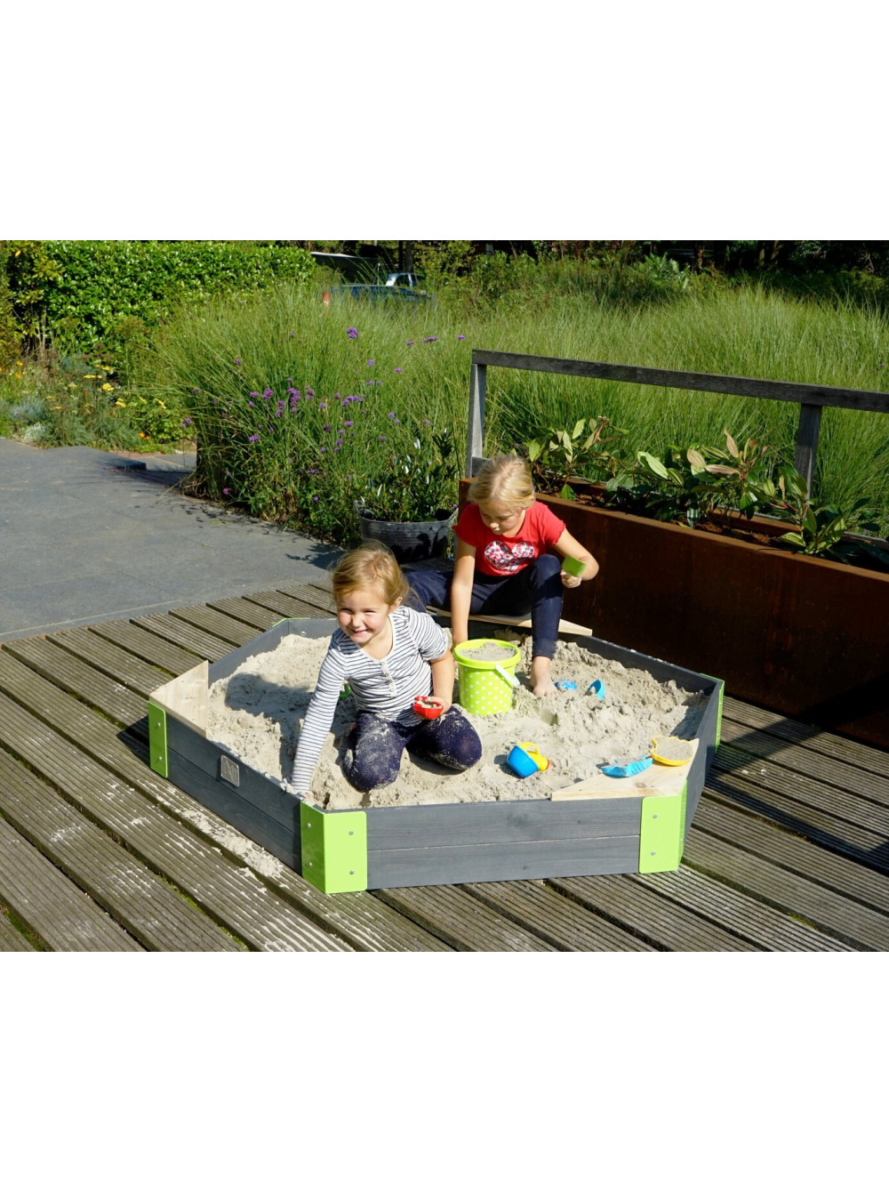 Створіть для своєї дитини місце, де оживає уява! Шестикутна пісочниця EXIT Aksent — це ідеальний простір для веселих пригод. Три зручні сидіння дозволять малюкам гратися з комфортом, а міцна дерев'яна конструкція прослужить багато років. Будуйте замки, влаштовуйте археологічні розкопки або просто насолоджуйтесь теплими днями на вулиці!