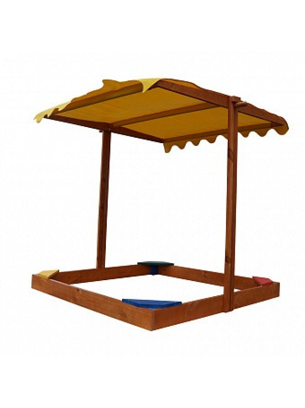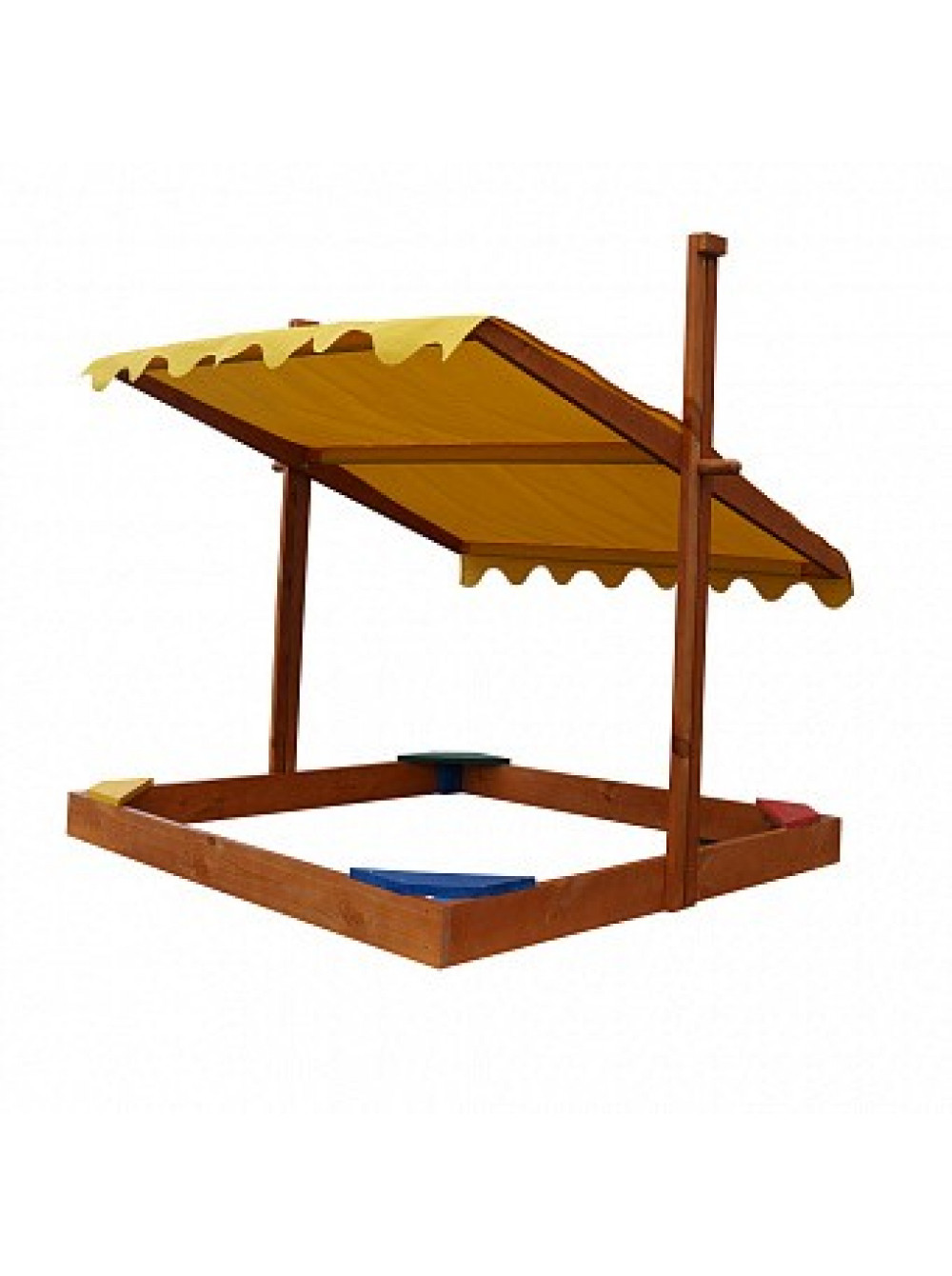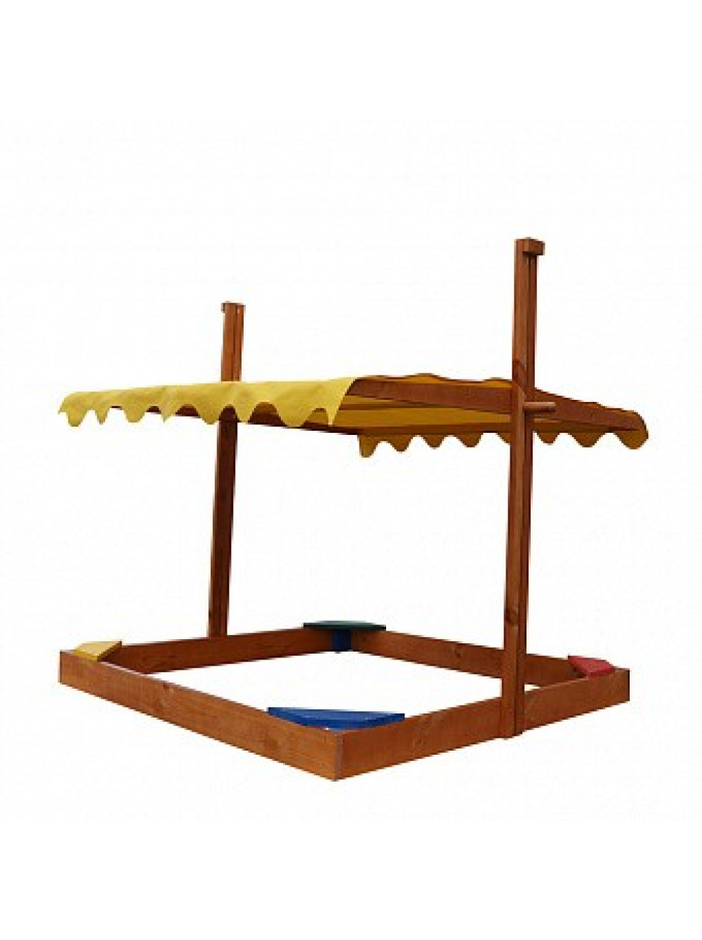 Дитяча пісочниця із дахом вельми функціональна і має відмінну особливість конструкції в тому, що її дах також може служить і захисною кришкою.
