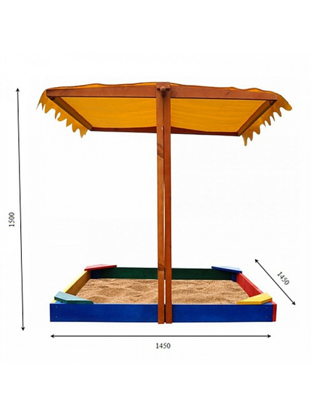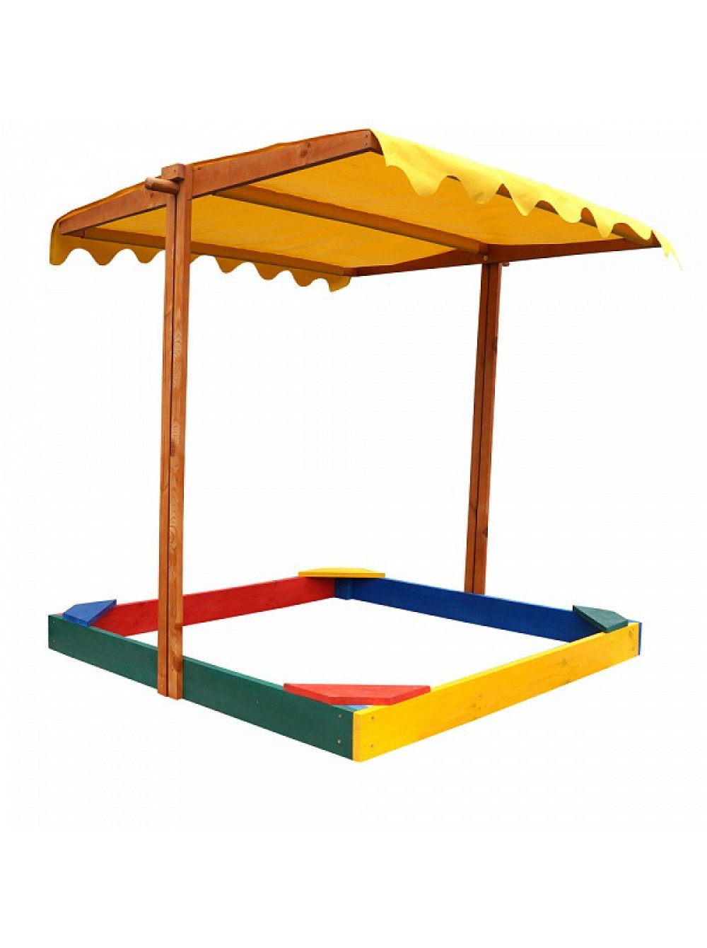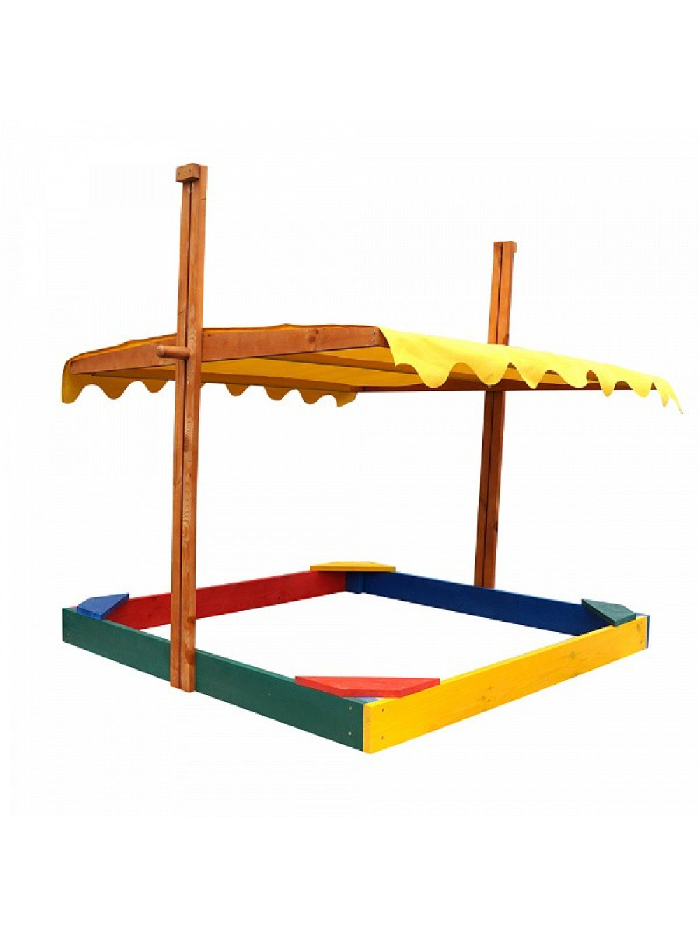 Всі елементи пісочниці ретельно зачищені і покриті сертифікованим водостійкими фарбами, які захищають деревину від зовнішнього впливу, гниття, грибків, і надає виробу яскравий барвистий вигляд.