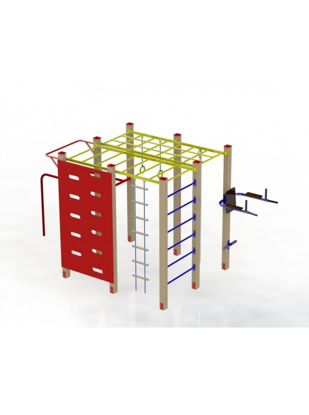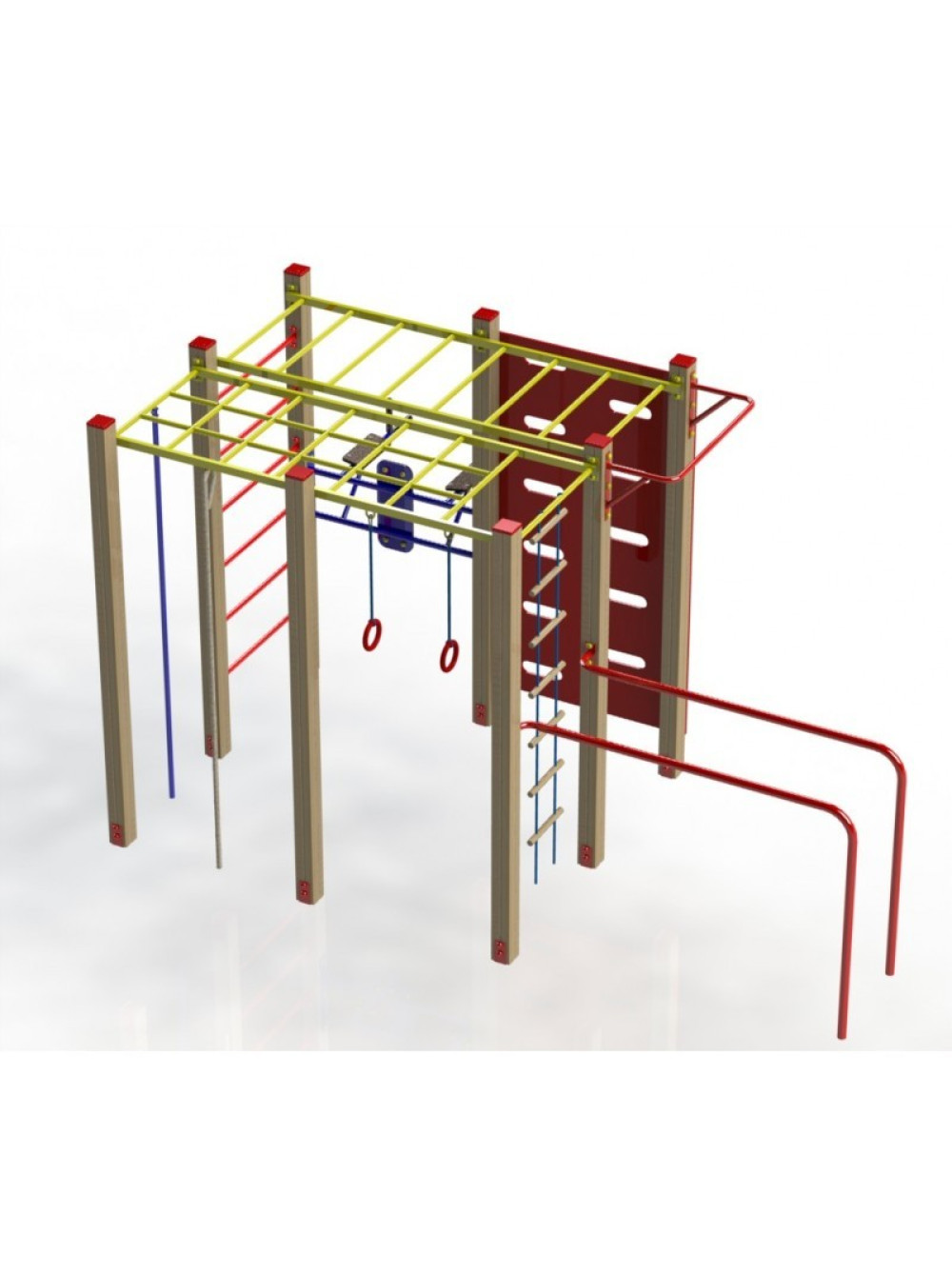 Спортивний комплекс для вулиці Катаріна - стильна і яскрава модель для організації куточка для занять спортом та проведення вільного часу підлітків, молоді та дорослих. Такий тренажер буде цікавий в будь-якій компанії людей, які піклуються про своє здоров'я і зовнішній вигляд. Дітям молодшого віку буде цікава скелелазка і навісні мотузкові елементи. Також при бажанні можна доповнити комплекс навісною гойдалкою. Виріб підлягає обов'язковому бетонування.