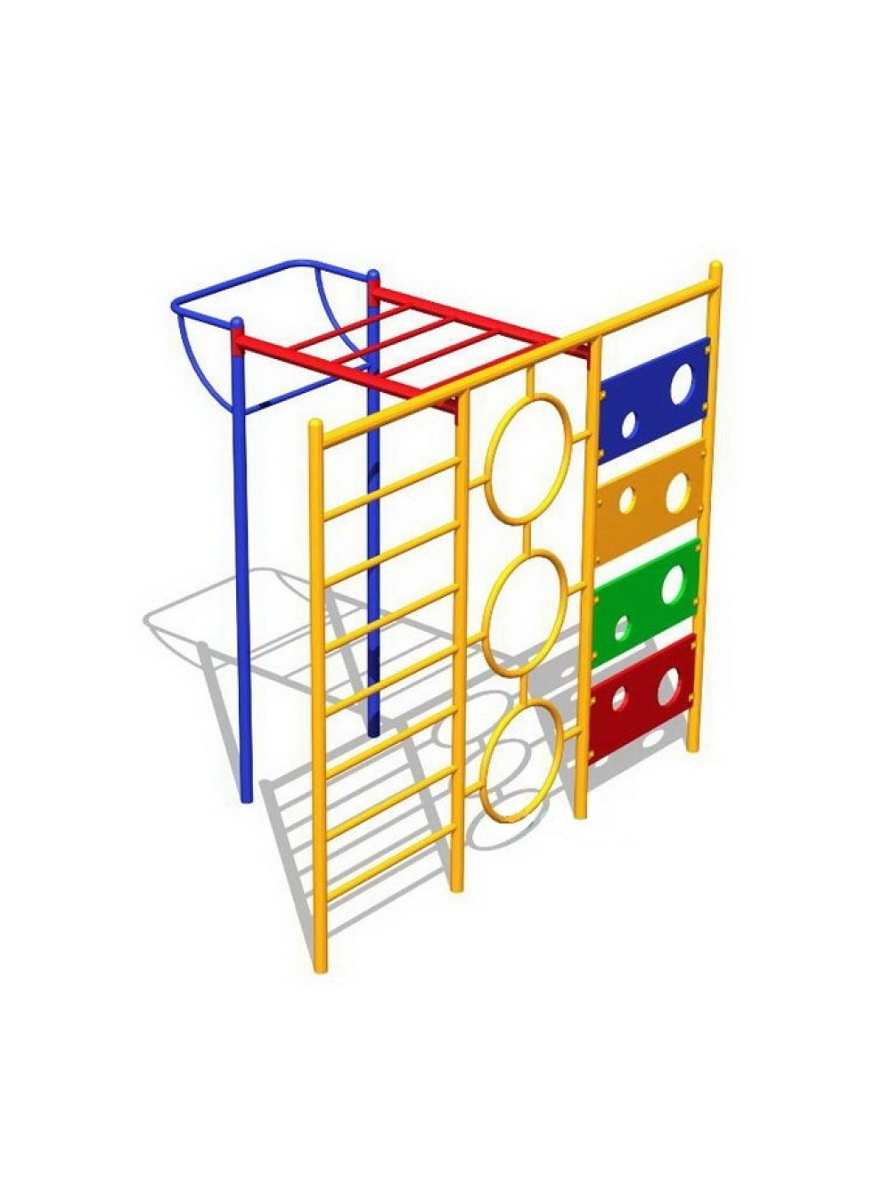 Спортивний комплекс Спритний - якісний і надійний, з невеликими габаритними розмірами, з задоволенням оселиться в будь-якому дворі багатоповерхівки або громадського місця для прогулянок з дітьми (парки, сквери). Буде цікавий для діток у віці від чотирьох років. На майданчику, крім спортивних снарядів, є кола, панелі з отворами і драбинки для лазів, що так подобається дітям, особливо маленьким.