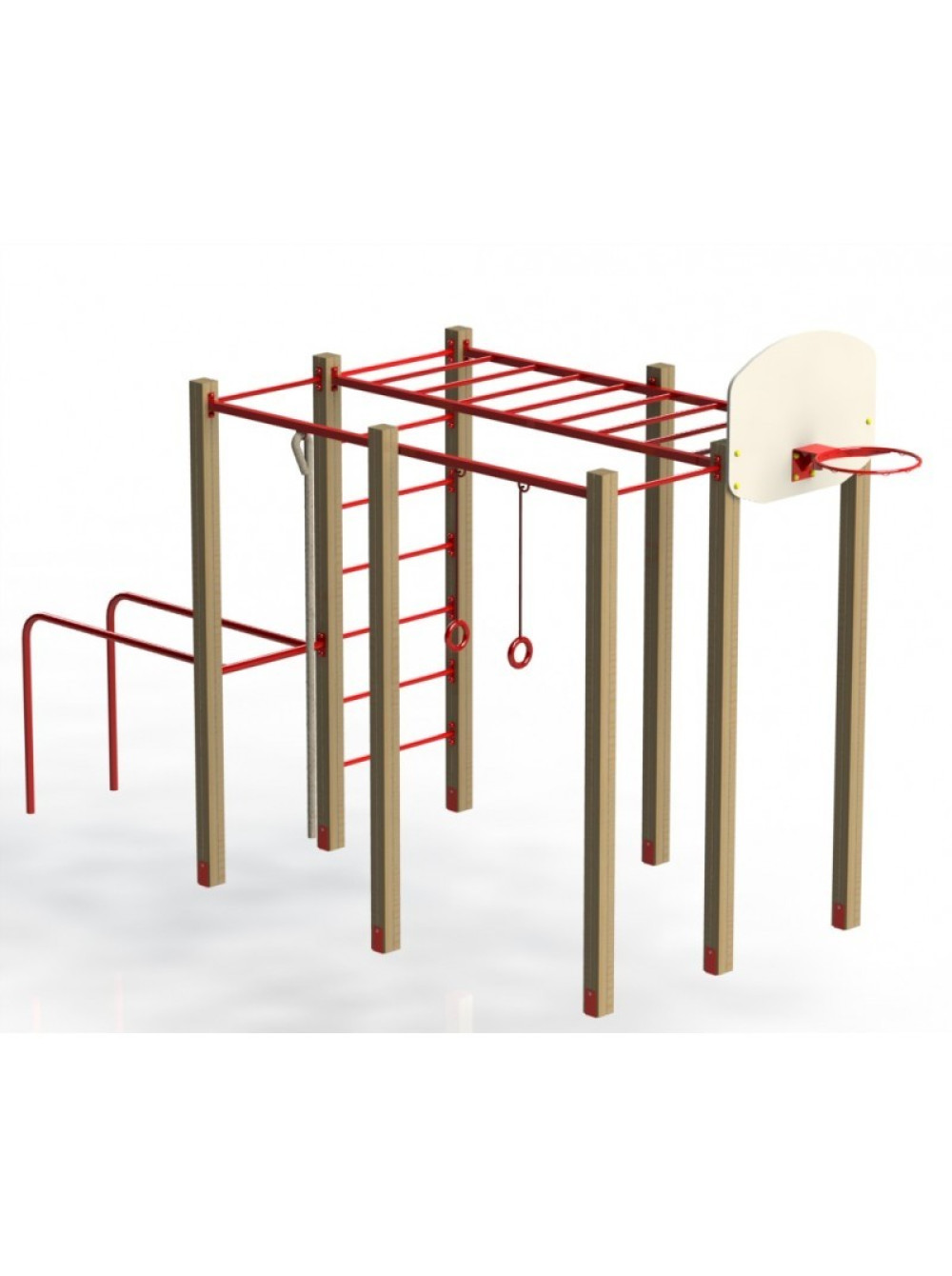 Спортивний комплекс Робін + волейбольне кільце - відмінний варіант для організації спортивного майданчика в будь-якому зручному для Вас вільному куточку саду, двору чи стадіону. На такому пристосуванні зможуть одночасно витягуватися і тренуватися кілька людей, як хлоп'ят ,так і їх батьків. Тут є все необхідне як для спортивних навантажень, так і для активного ігрового дозвілля. Наприклад, можна пограти у волейбол. Виріб підлягає обов'язковому бетонуванню.