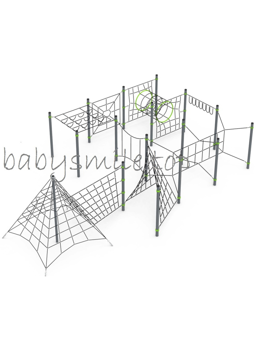 Ігровий канатний майданчик В-021 спеціально розроблений для дитячих ігрових зон на вулиці, які сприяють фізичним розвагам і розвитку детей.Такі канатні комплекси - це веселий і безпечний спосіб змусити дітей лазити, повзати і розгойдуватися на мотузках, можливості обмежені тільки дитячою уявою. Сходження і захоплення каната творять чудеса для розвитку дрібної моторики.