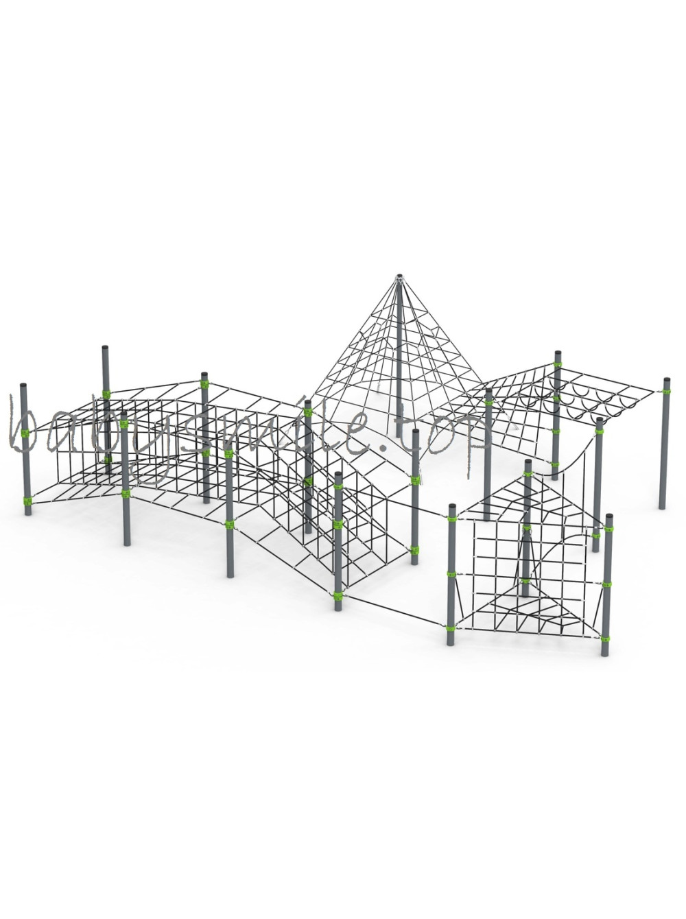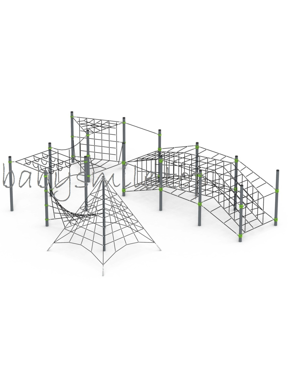 Ігровий канатний майданчик В-022 спеціально розроблений для дитячих ігрових зон на вулиці, які сприяють фізичним розвагам і розвитку детей.Такі канатні комплекси - це веселий і безпечний спосіб змусити дітей лазити, повзати і розгойдуватися на мотузках, можливості обмежені тільки дитячою уявою. Сходження і захоплення каната творять чудеса для розвитку дрібної моторики.