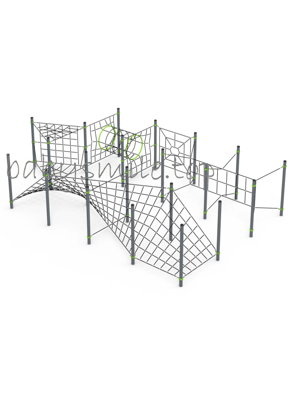 Ігровий канатний майданчик В-023 спеціально розроблений для дитячих ігрових зон на вулиці, які сприяють фізичним розвагам і розвитку детей.Такі канатні комплекси - це веселий і безпечний спосіб змусити дітей лазити, повзати і розгойдуватися на мотузках, можливості обмежені тільки дитячою уявою. Сходження і захоплення каната творять чудеса для розвитку дрібної моторики.
