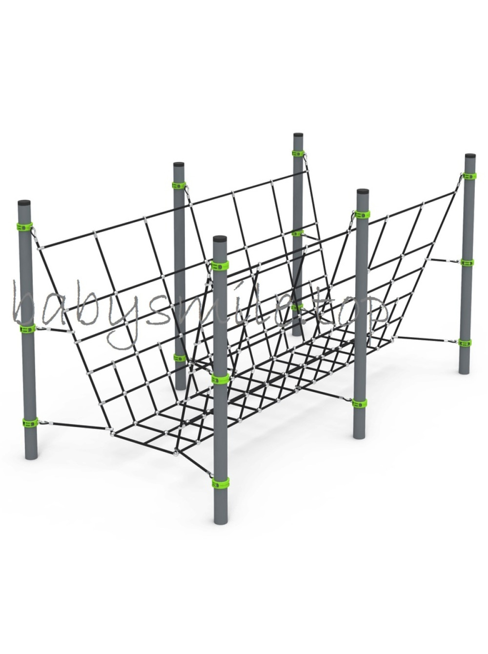 Цей Ігровий мотузяний комплекс - В-06 розроблений спеціально для дитячого майданчика, сприяє розвитку фізичних навичок і орієнтації, спонукає дітей проходити різні рівні складності, тунелі і перешкоди у пошуках правильного шляху, навчає тримати баланс і рівновагу.