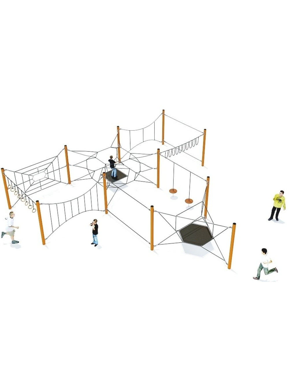 Канатний спортивний комплекс Джунглі пропонує унікальну гнучку систему з мотузяних сіток, елементів різних форм та модифікацій, яка розроблена для активних ігор дітвори на свіжому повітрі. Канатні комплекси - це весело і цікаво для дітей, сприяють фізичній активності і кидають виклик дітям унікальним і безпечним способом. Допомагають розвивати спритність, силу, координацію, баланс і здатність знаходити вихід зі складних ситуацій.