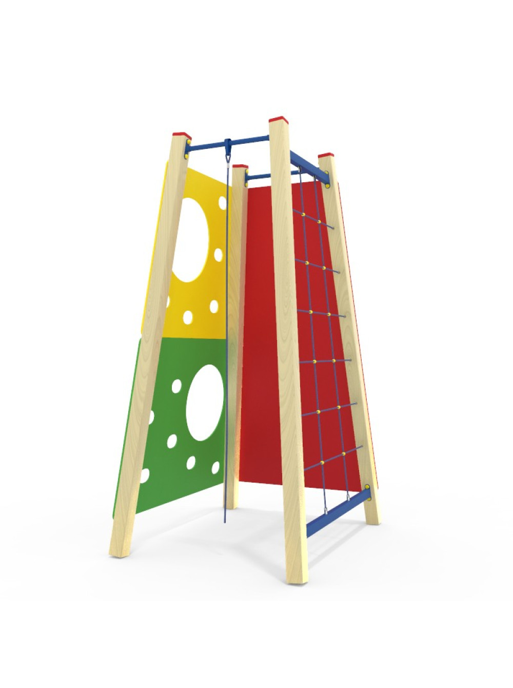Спортивний майданчик вежа зі скеледромом - цікавий ігровий комплекс, який складається з різних скелелазок і сітки для лазінь. Ідеально підійде для самих маленьких дітей, його можна встановити на території дитячих садів і громадських зон для відпочинку.