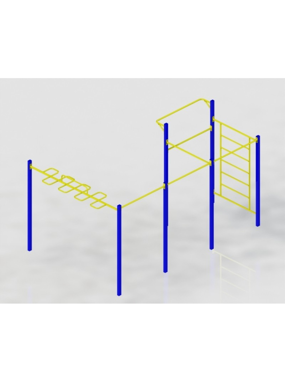 Такий спортивний комплекс можна встановити в громадському місці для використання безліччю любителів активного проведення часу і фізичних навантажень.