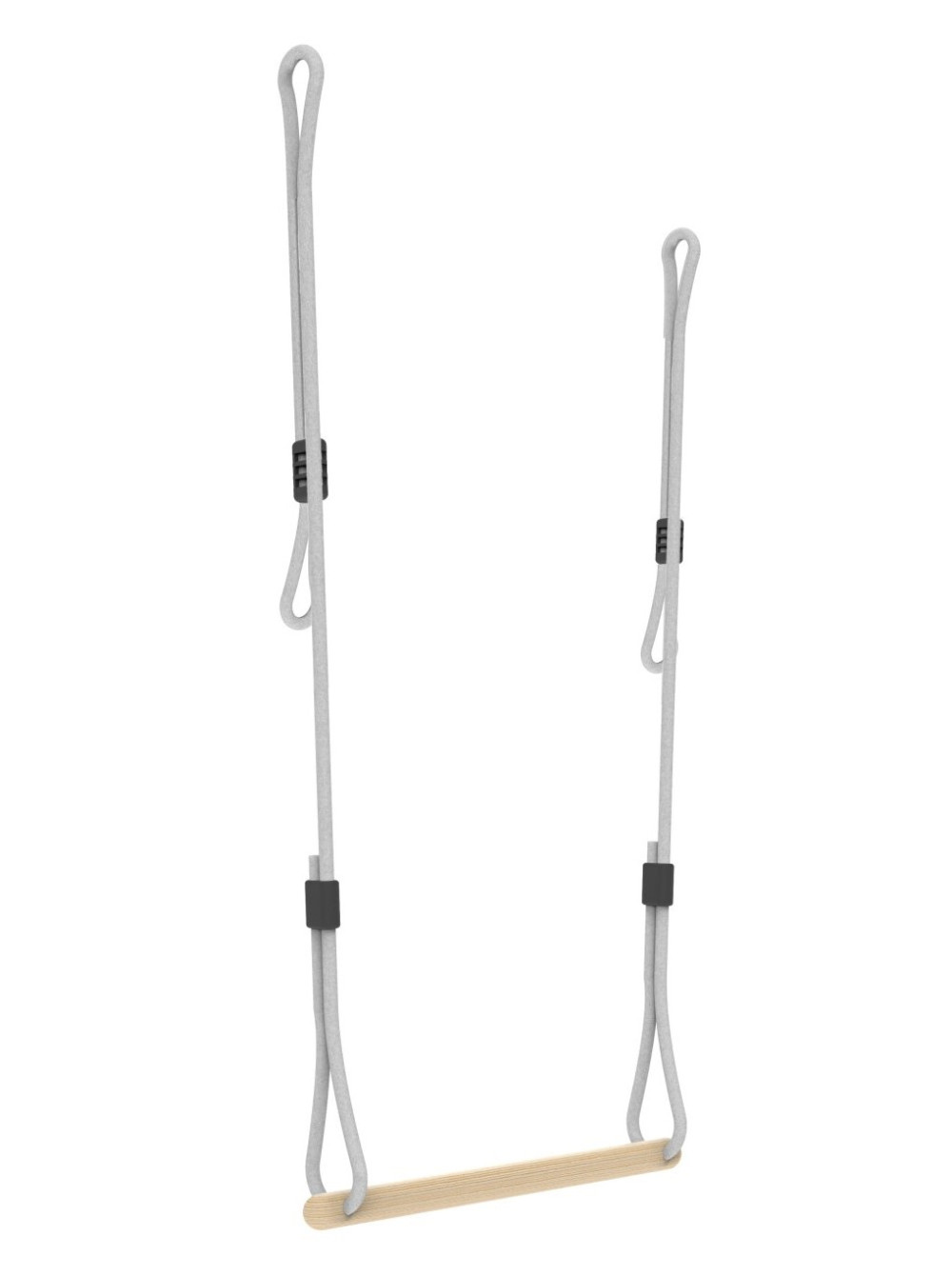 Трапеція виготовлена з масиву листяних порід дерев. У комплекті система для кріплення, завдяки якій ви можете повісити трапецію легко і швидко. Мотузки м'які і зручні, ви можете самі регулювати їх висоту.