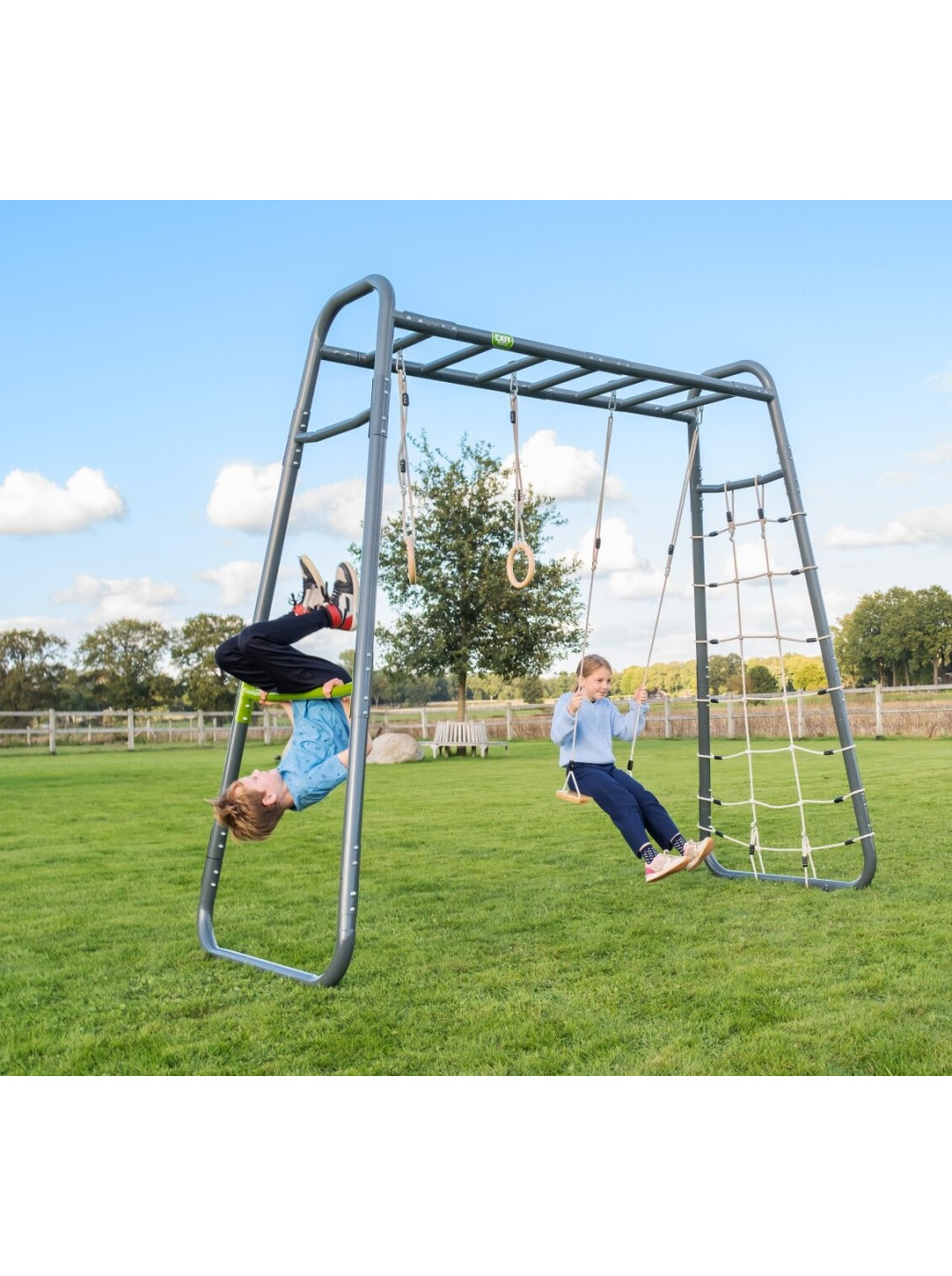 Воркаут для дітей і підлітків Exit GetSet MB200 — чудовий спортивний комплекс для розміщення на вулиці в базовій комплектації. Ви самостійно можете додати потрібні аксесуари.