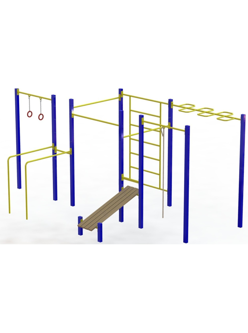 Воркаут для спортивного майданчика-1  призначений для розміщення в громадських місцях: стадіонах, парках, в дворах житлових будинків. Вуличні тренування - це доступний міський спорт, який сприяє фізичному розвитку тіла. Він складається з серії вправ на силу, гнучкість і рівновагу. Ці вправи виконуються з використанням тільки власної ваги на турніках, брусах і тренажерах, встановлених на різній висоті. З таким спортивныим устаткуванням Ви можете виконувати підтягування, віджимання, присідання.