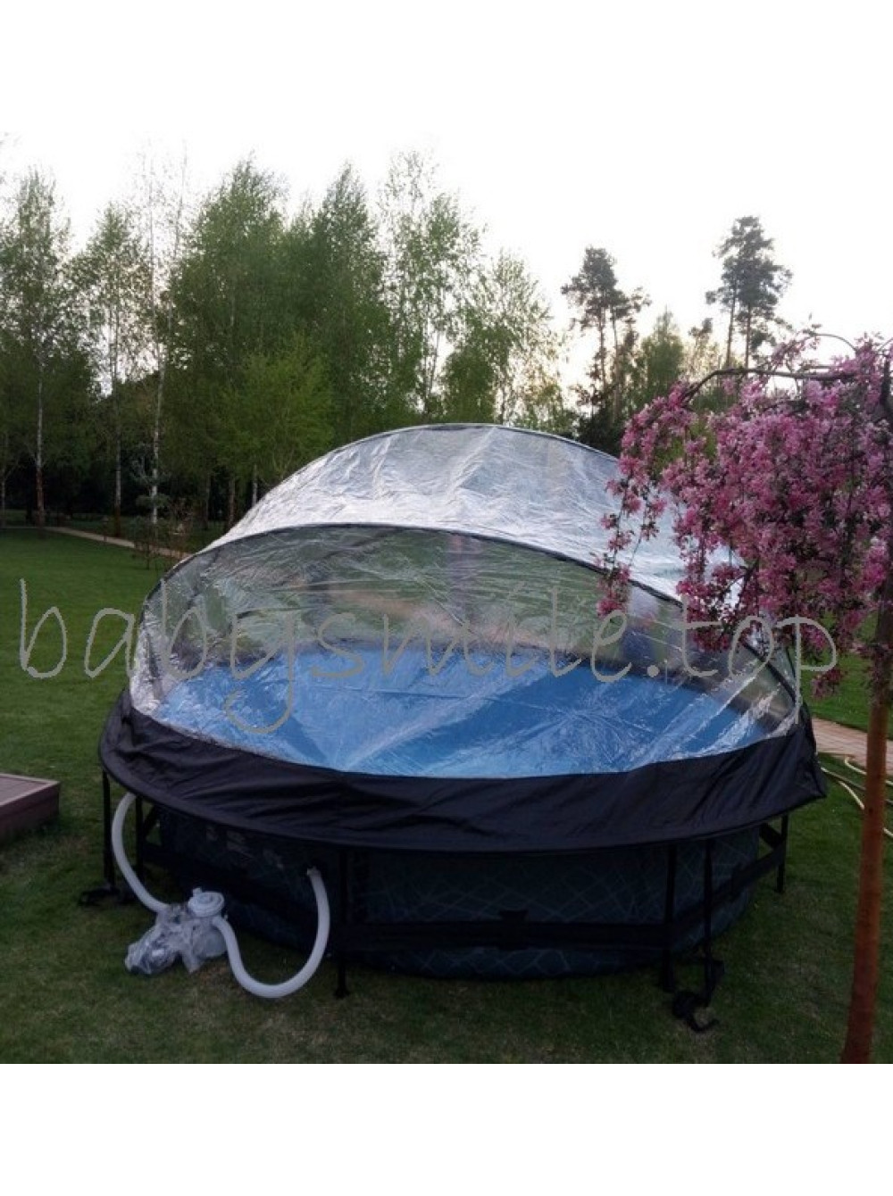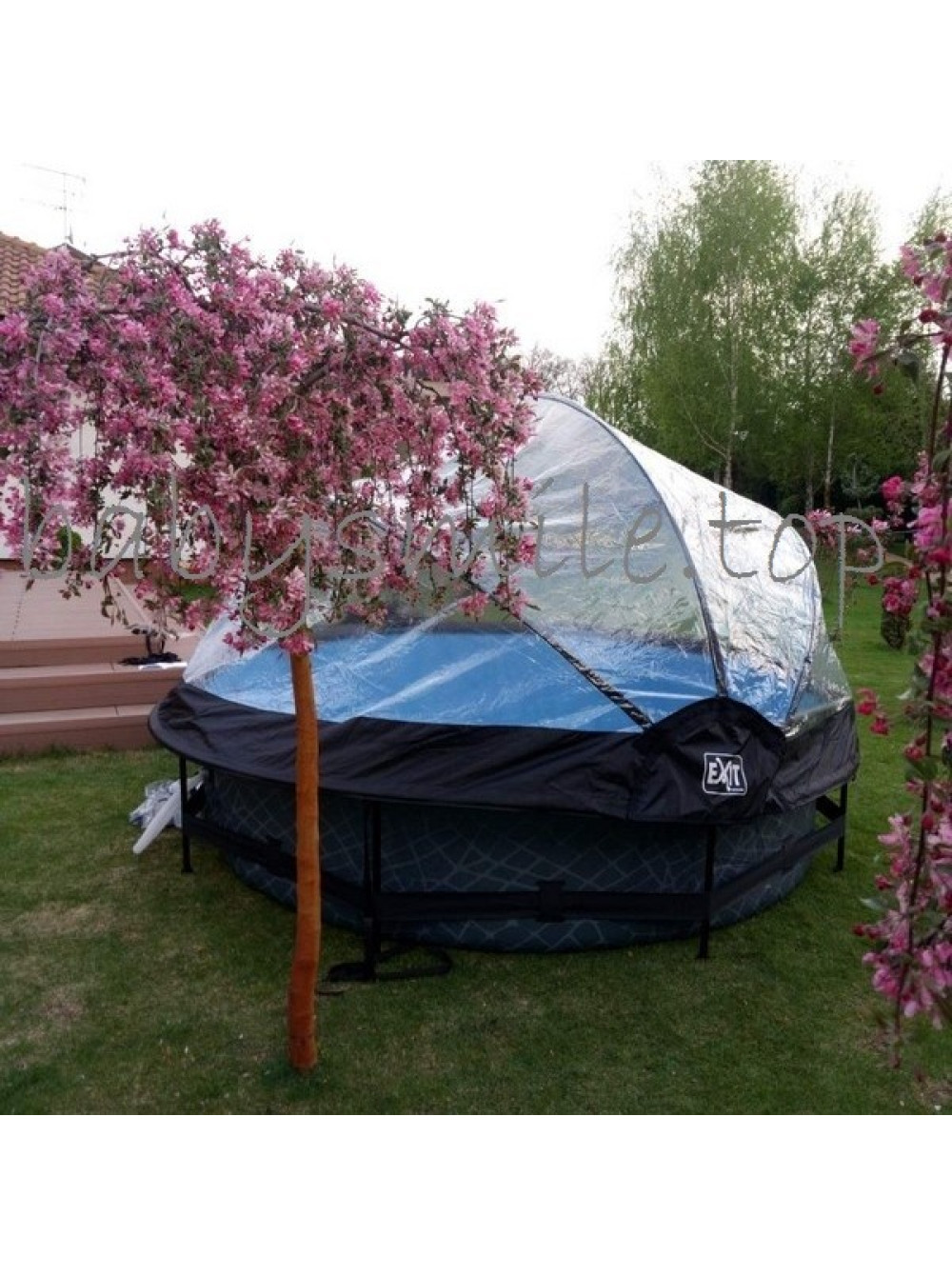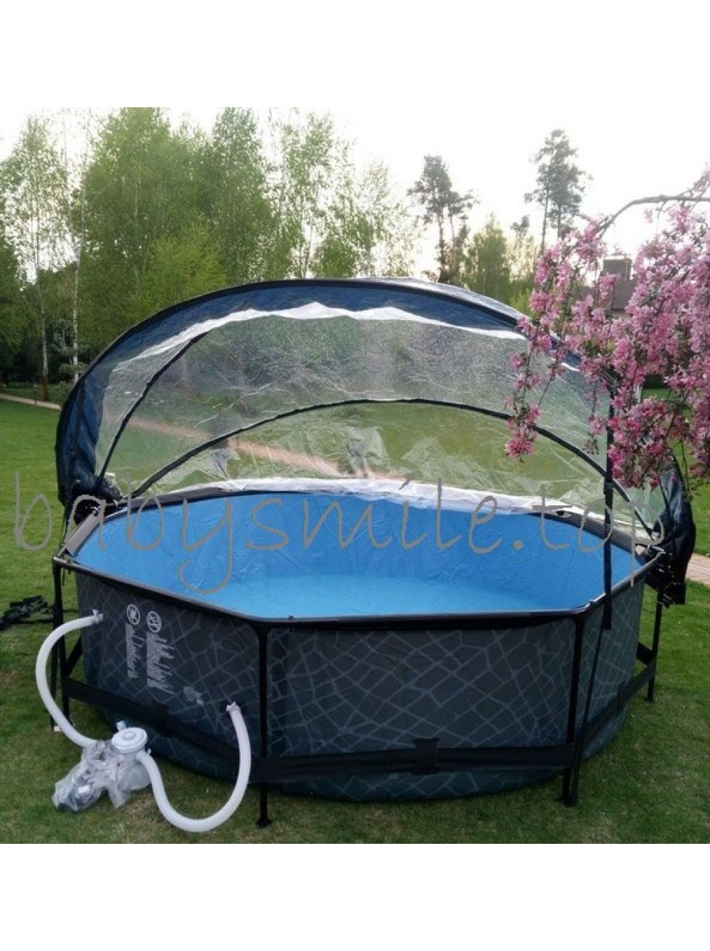 Басейн круглий з куполом EXIT камінь 300 х 76 см виглядає лаконічно і елегантно. Із зовнішнього боку-тканина з забарвленням у вигляді кам'яної стіни, що зробить його розміщення в саду, на дачі або у дворі будинку особливо естетичним.