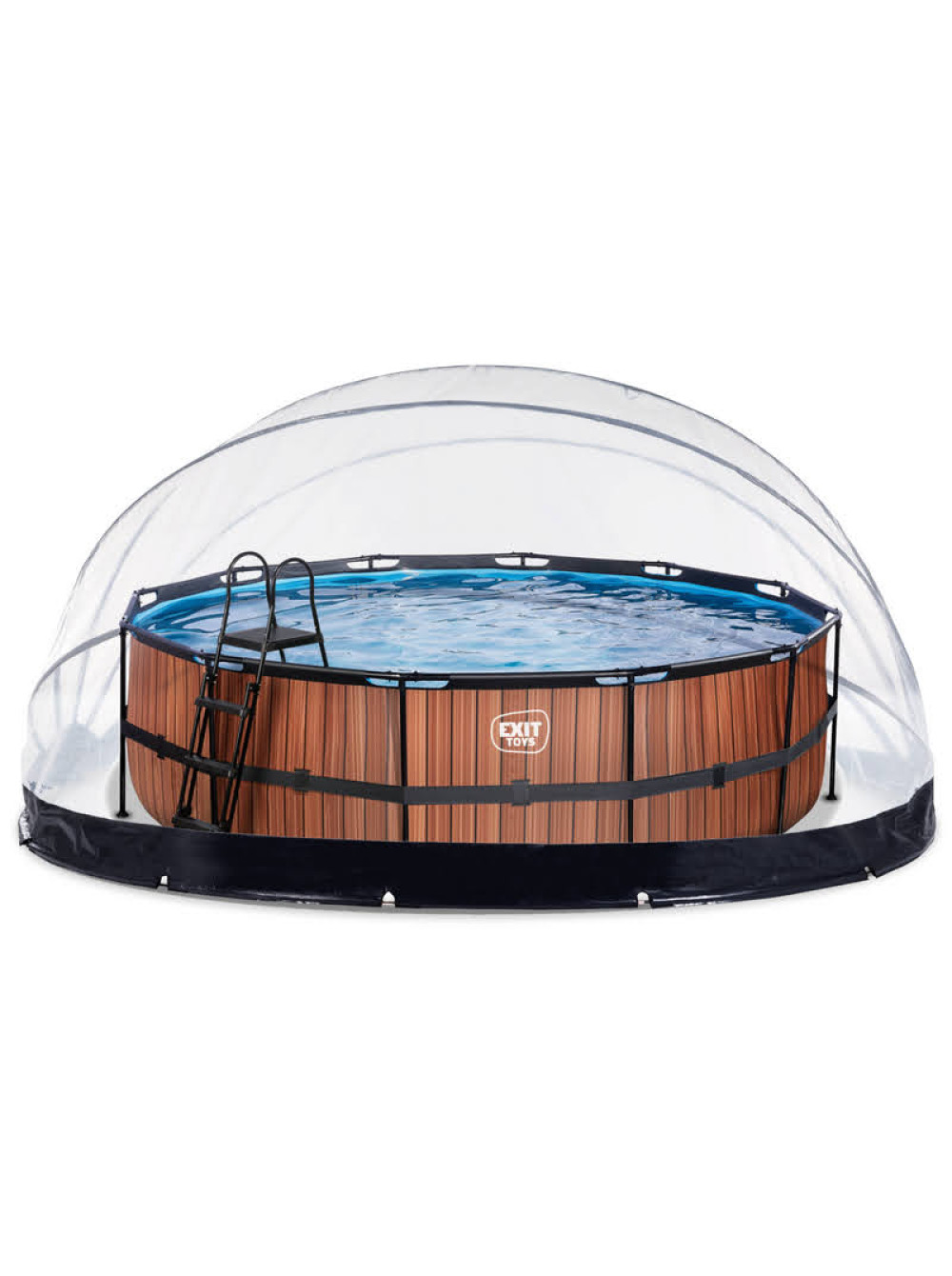 У комплекті: пісочний фільтр для очищення води, драбина та купол-накриття EXIT ECO ø550 см. Купол захищає басейн від дощу, вітру та сміття, прискорює нагрівання води та подовжує сезон використання. Його можна повністю закрити, відкрити або залишити напіввідкритим.