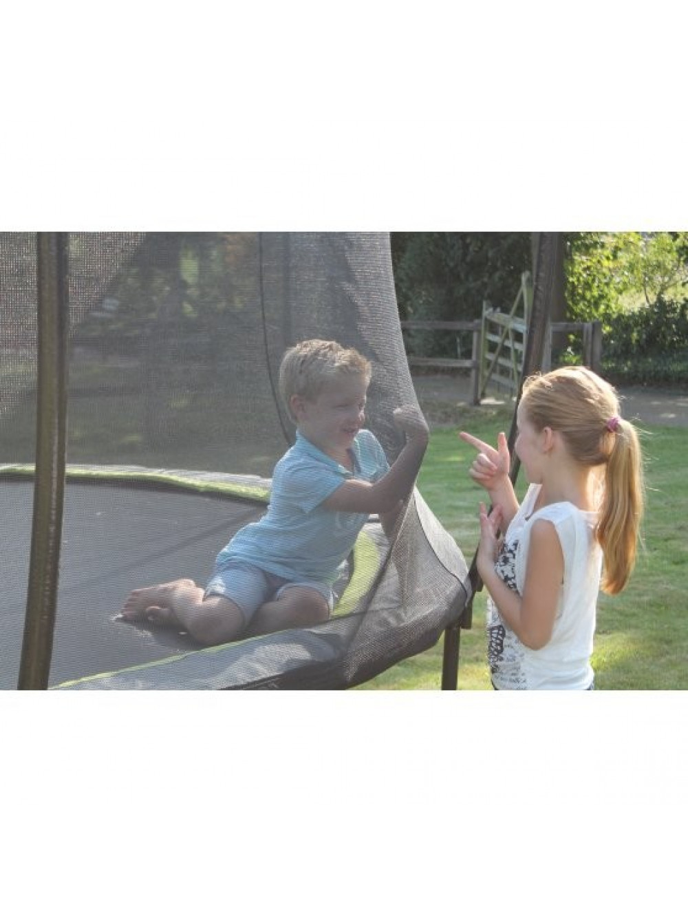 До дрібниць продумана ергономіка і безпека, захисна сітка натягнута дуже міцно на вигнуті опори, тому у дітвори просто немає можливості заплутатися і впасти. Крім цього сітка охоплює простір між захисним краєм і пружинами і коли діти стрибають їх ноги не торкаються пружин.