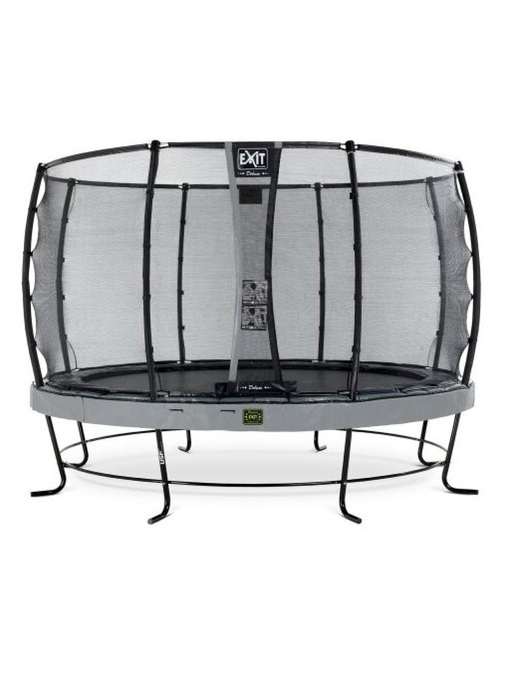 Батут EXIT Елегант Преміум 366 см сірий з сіткою безпеки Deluxe - це високоякісний круглий батут, продукт найвищого класу, кращий з серії батутів Elegant із захистом на пружинах сірого кольору і сірою спідницею. Він безпечний, красивий, дуже зручний, має супер міцну раму і легко збирається.