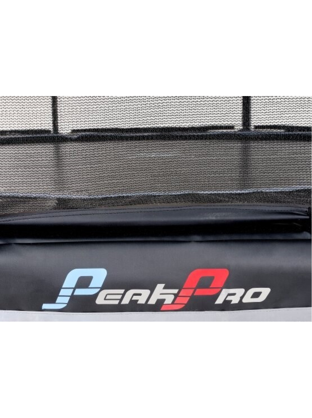 Батути PeakPro підходять для дітей і дорослих, які вже є досвідченими стрибунами. Великі і гнучкі пружини EXIT PeakPro мають довжину 25 сантиметрів, що дозволяє легше виконувати стрибки у висоту. Удосконалюйте свої акробатичні навички на просторому покритті для стрибків і станьте справжнім професіоналом. Захисна сітка, що входить в комплект батута, має шкалу виміру стрибка, яка показує усім, наскільки високо ви можете стрибнути. Киньте виклик своїм друзям, щоб дізнатися, хто першим досягне відмітки "дев'ять" за шкалою
