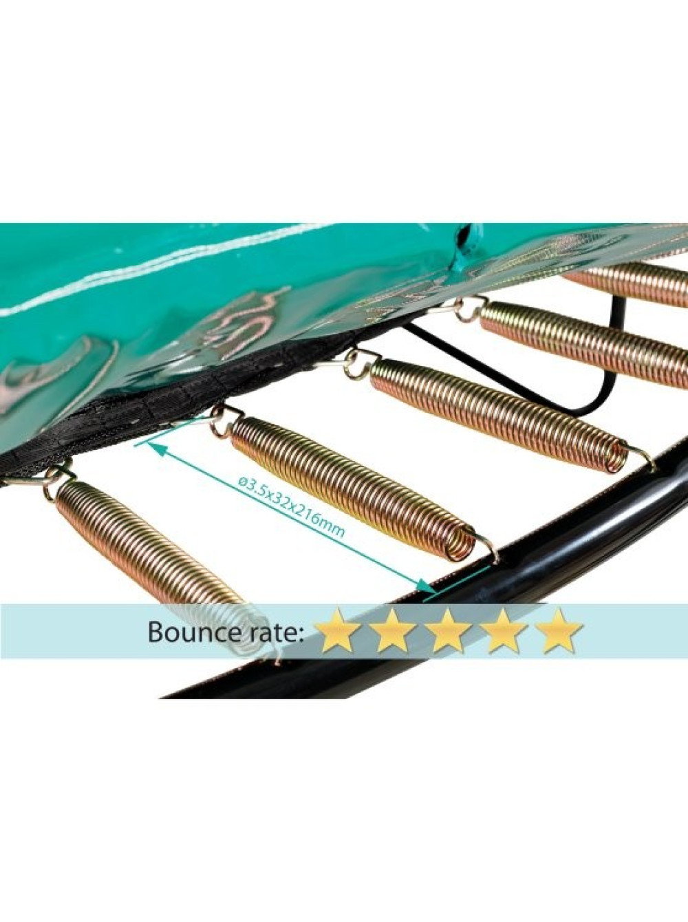 На додаток до захисної сітки, практичні сходи і сумка для взуття. Пружини батута мають довжину 21.6 см, забезпечують високий стрибок і м'яку посадку. Унікальна система вентиляції стрибкового мату і захисної кромки забезпечує відкриту конструкцію, завдяки чому повітря легко виходить під час стрибка.