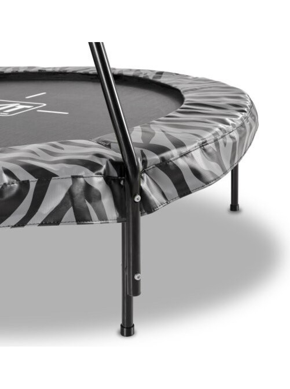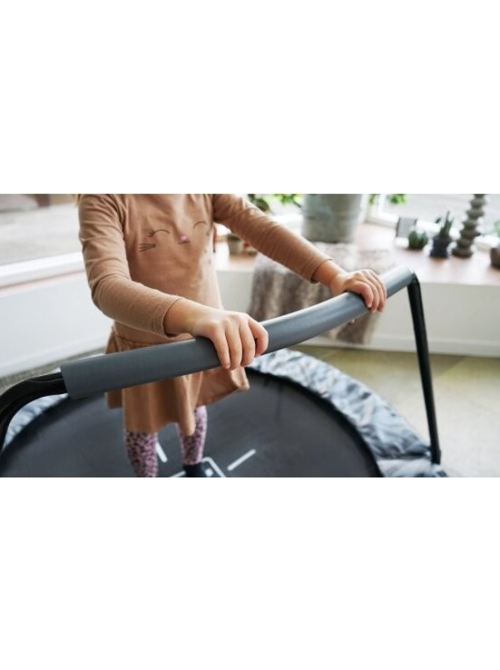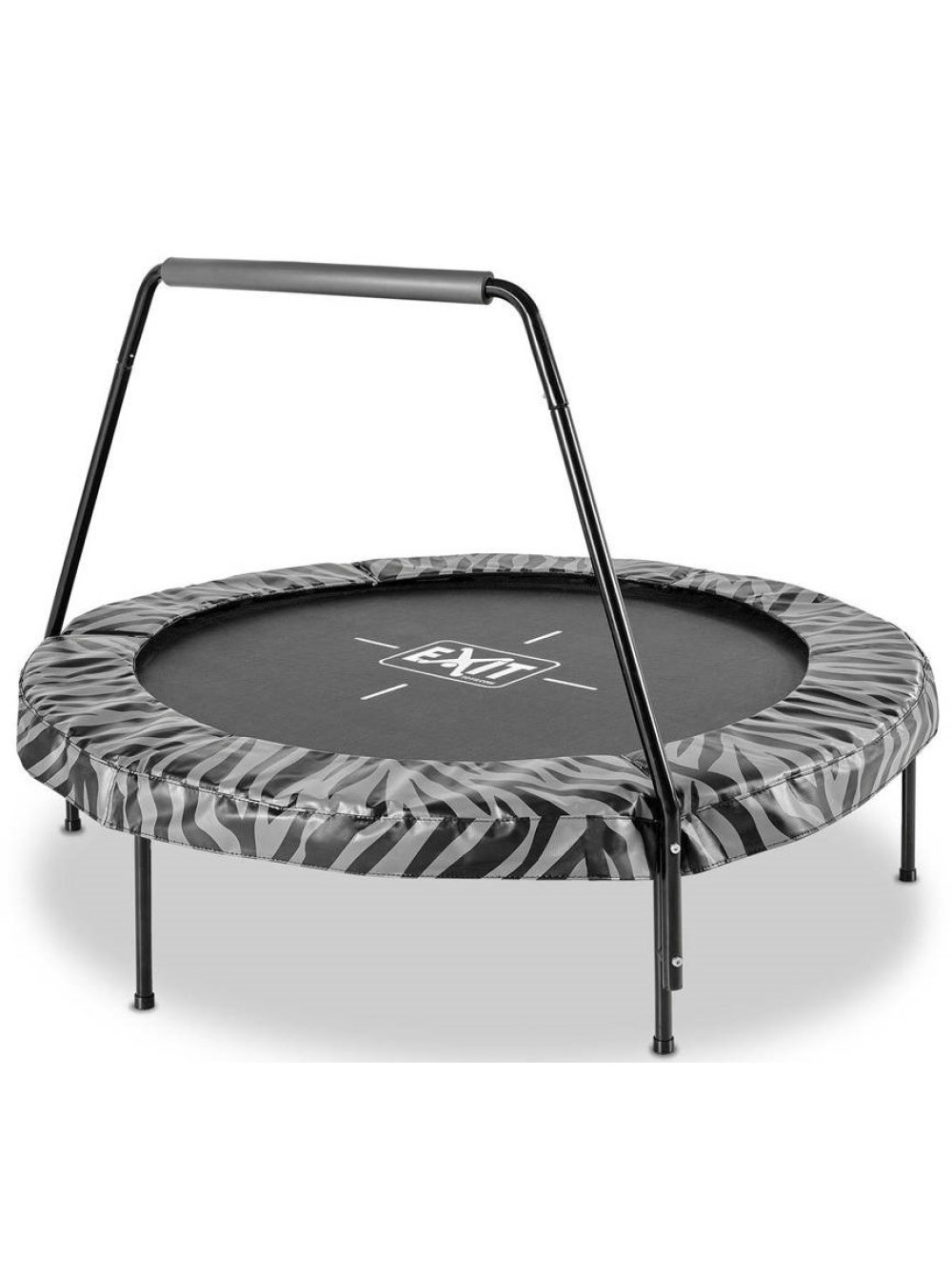 Батут EXIT Tiggy з ручкою 140 см сірий - міні-батут для дітей від двох до шести років. Це компактний круглий батут має надійно закріплену ручку, за яку можна триматися під час стрибків. Батут має унікальний захисний мат на гумки сіро-чорного кольору з леопардовим малюнком. Батут розроблений спеціально для малюків, він не високий, від землі його висота всього 34 см, щоб маленьким дітям було комфортно підніматися на нього.