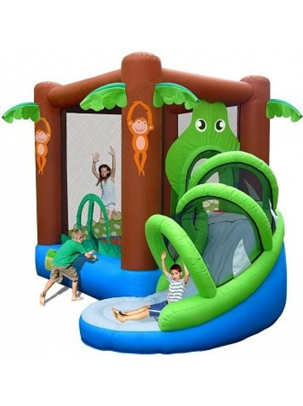 Пропонуємо Вашим діточкам переміститися в загадковий світ далеких екзотичних країн, подорожей і пригод. Організувати це у себе на Батьківщині і навіть на своїх приватних володіннях, досить просто, потрібно всього лише придбати Надувний батут для дітей Веселі джунглі і встановити цей диво-майданчик для ігор в потрібному для Вас місці.