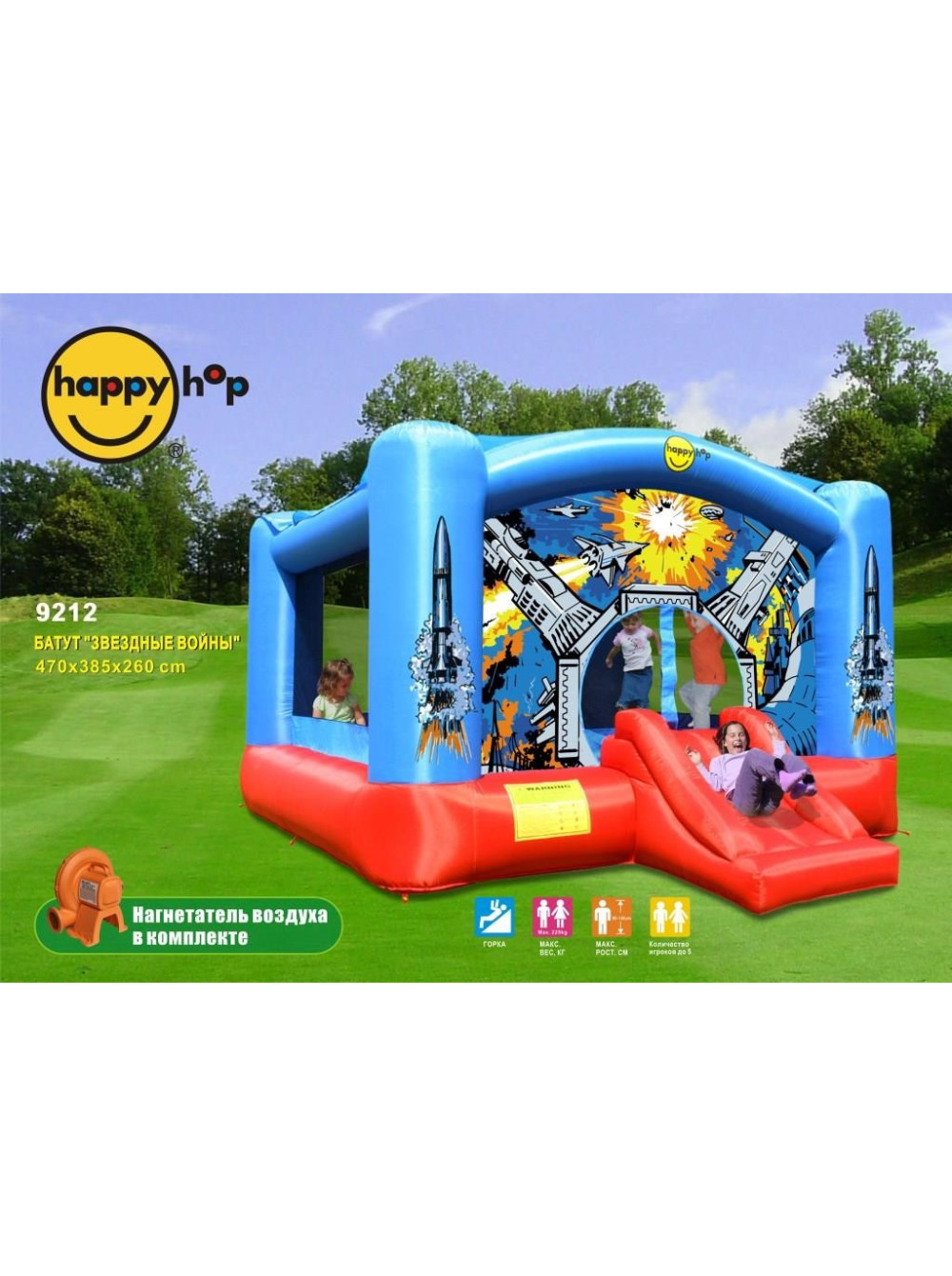 Надувний батут для дітей Зоряні війни великий, широкий і комфортний для ігор і стрибків дітей від двох років. Конструкція досить проста і буде корисна для стрибків на батуті і спусків з гірки, здатна витримувати навантаження до 225кг. На батуті одночасно зможуть знаходитися 5 діточок.