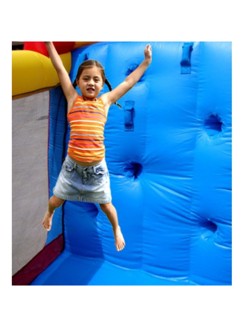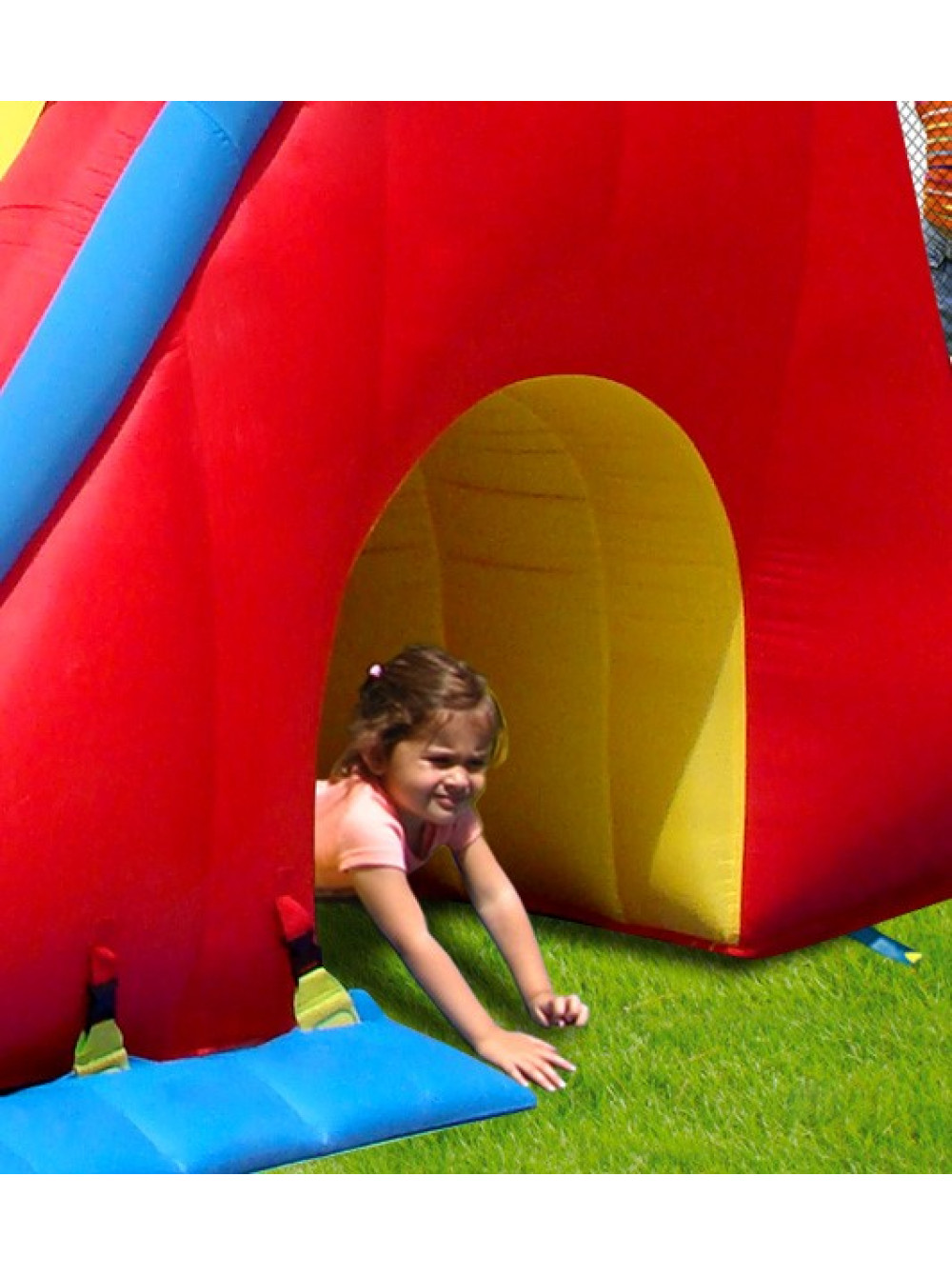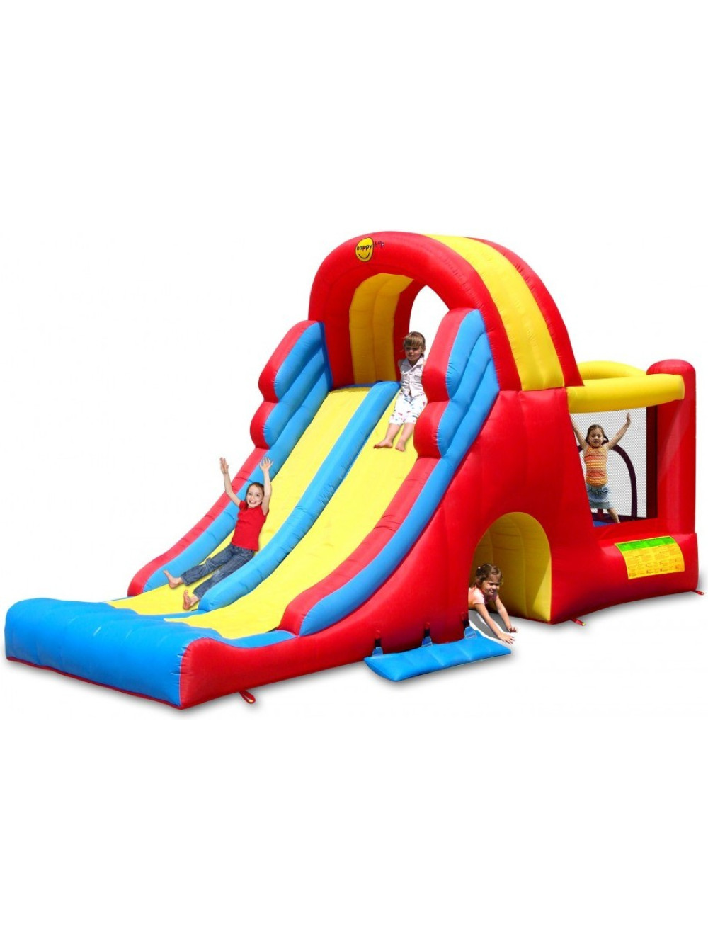 Надувний ігровий комплекс Мега-гірка повністю виправдовує свою назву, тому що основний елемент для ігор у ньому супер довгий і широкий спуск розділений на дві частини, на якому одночасно можуть кататися кілька дітей.