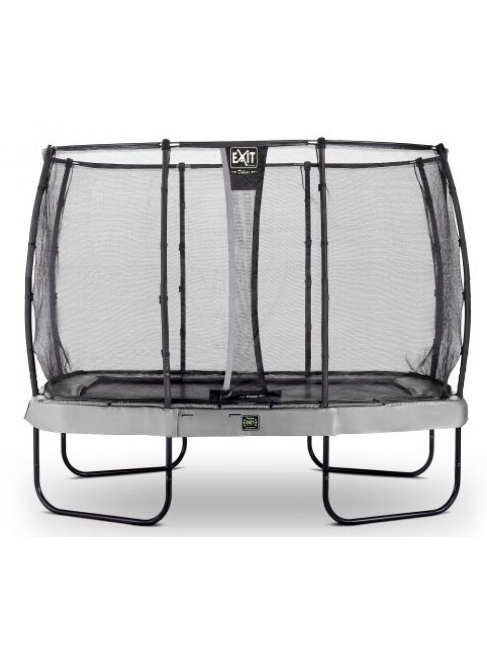 Батут EXIT Elegant Premium 214х366 cm сірий з сіткою безпеки Deluxe - прямокутний батут вищої якості з сіткою безпеки Deluxe, кращий з серії батутів Elegant із захистом на пружинах сірого кольору і зеленою спідницею. Він безпечний, красивий, дуже зручний, має супер міцну раму, легко збирається.