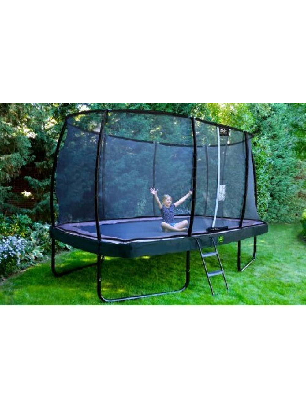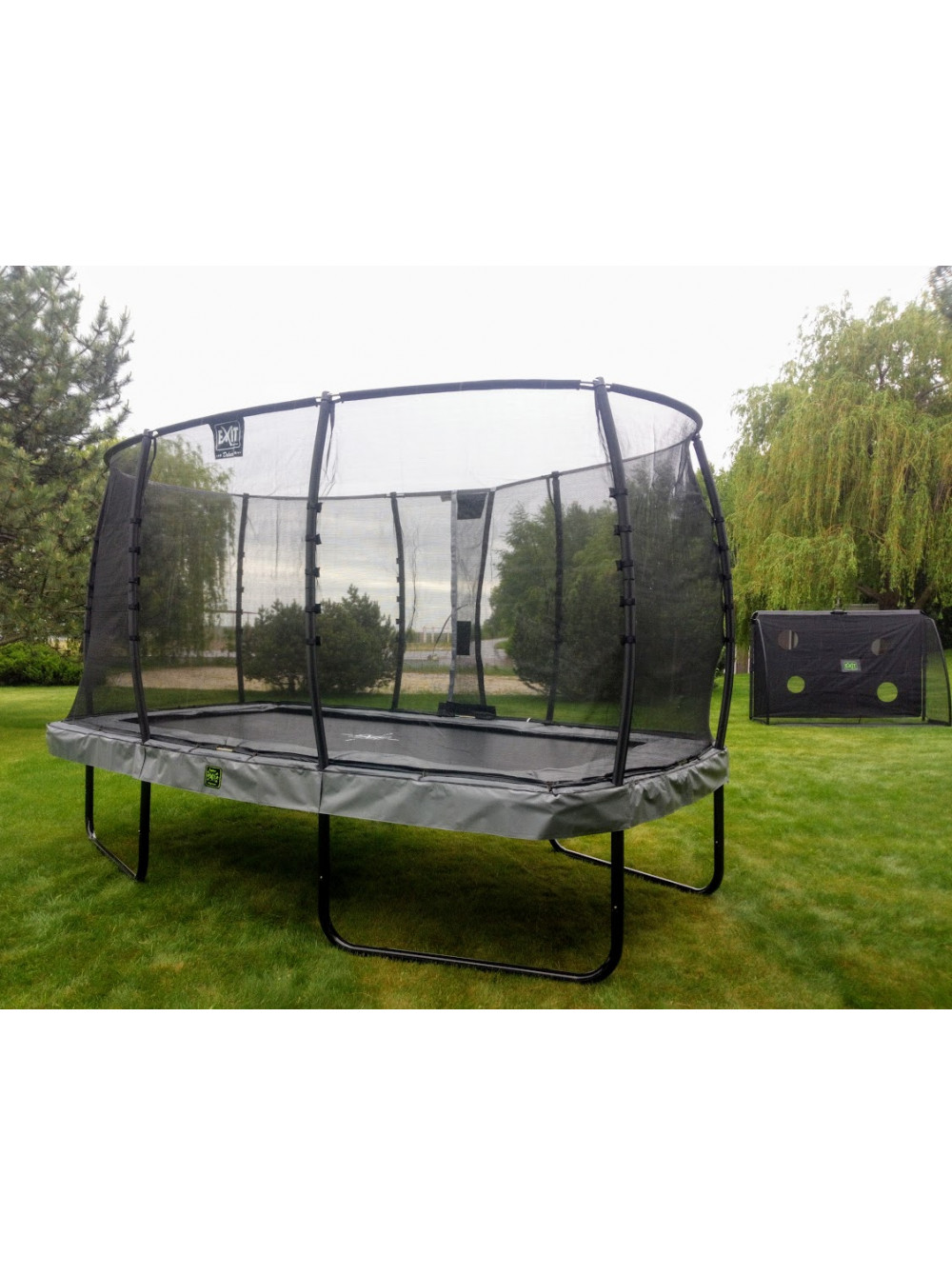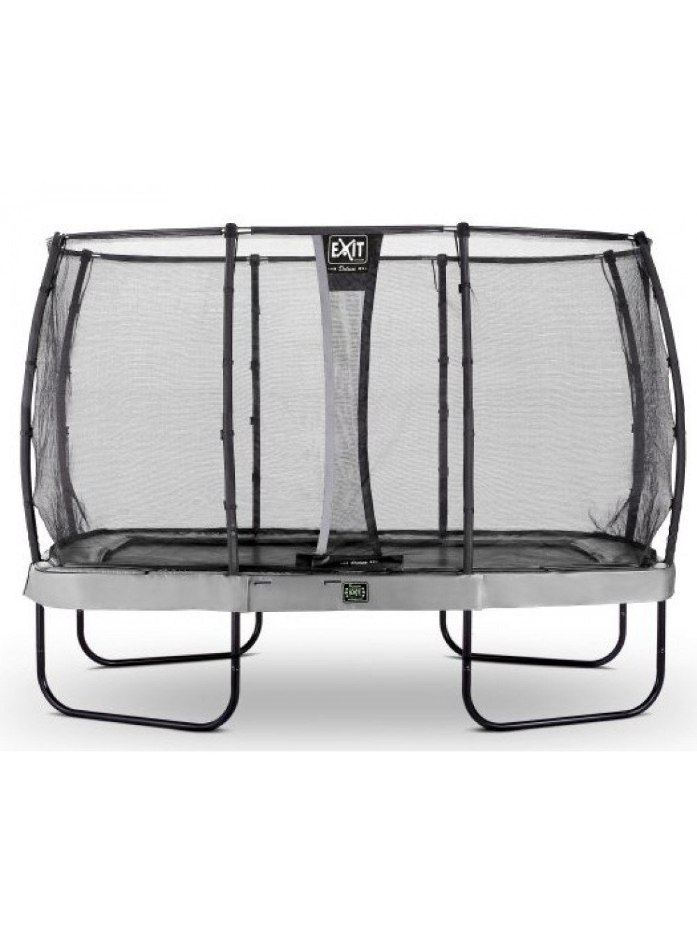 Батут EXIT Елегант Преміум 244х427 см сірий з сіткою безпеки Deluxe - прямокутний батут вищої якості з сіткою безпеки Deluxe, кращий з серії батутів Elegant із захистом на пружинах сірого кольору і сірою спідницею. Він безпечний, красивий, дуже зручний, має супер міцну раму, легко збирається.