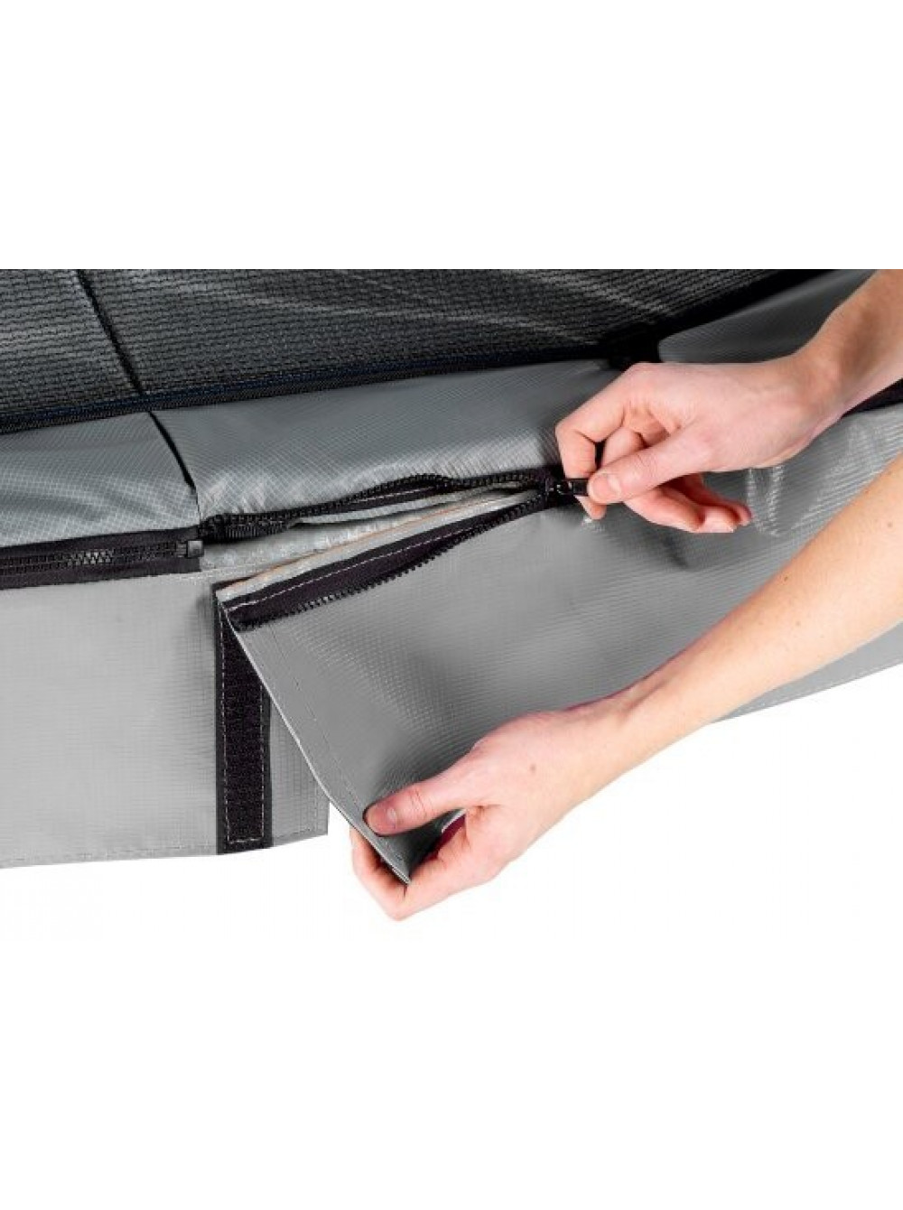 Спідниця оббивки довше і наповнення оббивки товще в порівнянні із стандартними EXIT Elegant батутами. А додаткове товсте покриття ПВХ на підкладці забезпечує триваліший термін служби.