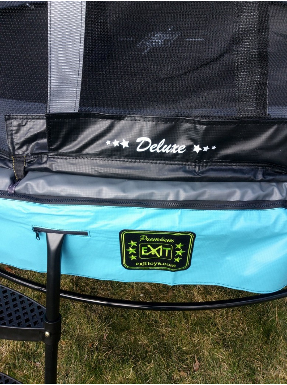 Спідниця оббивки довше і наповнення оббивки товще в порівнянні із стандартними EXIT Elegant батутами. А додаткове товсте покриття ПВХ на підкладці забезпечує триваліший термін служби.