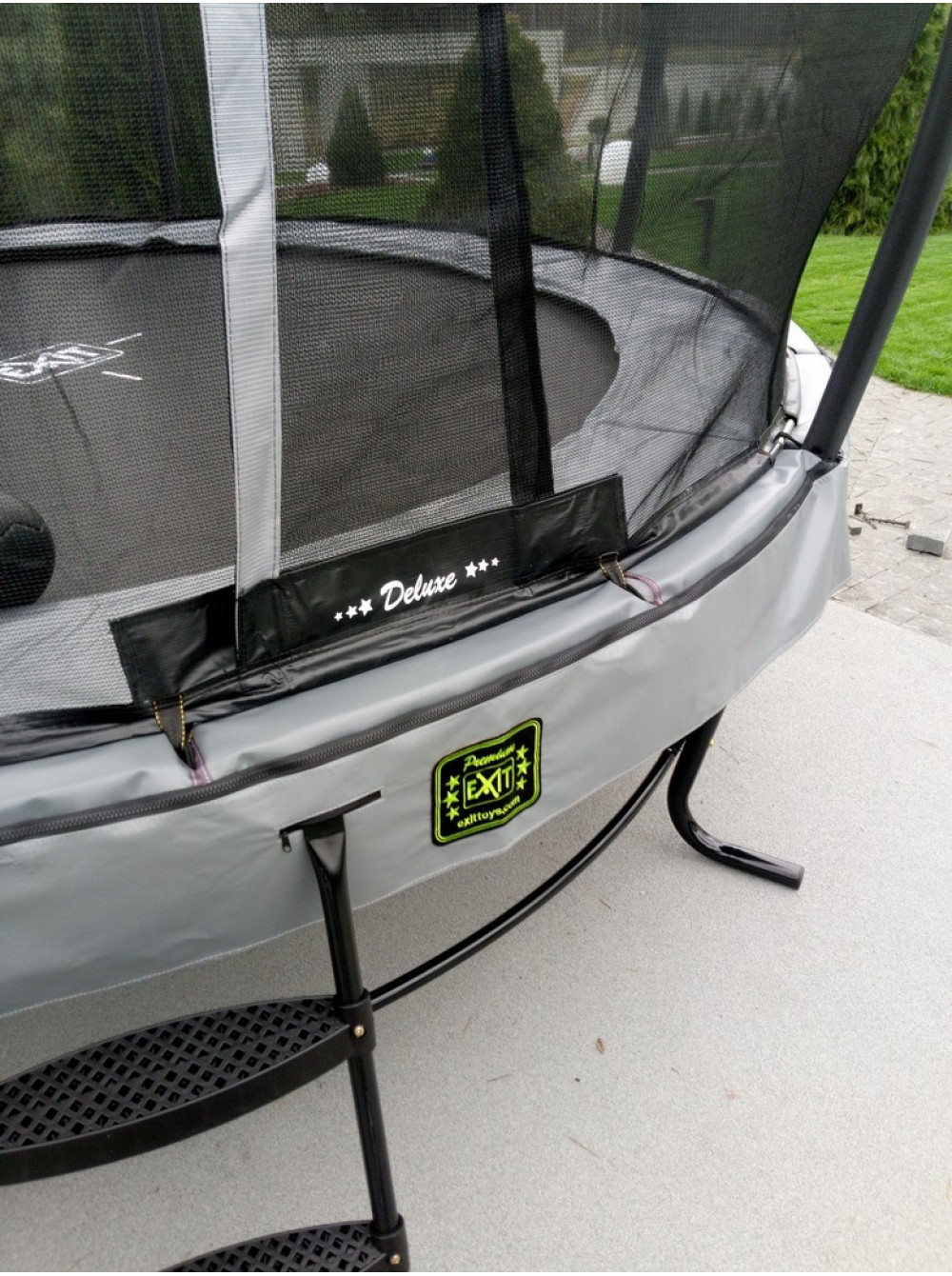 Як і будь-який батут EXIT Toys, EXIT Elegant Premium також поставляється з сіткою безпеки. Виробник продумав кожен аспект сітки безпеки Deluxe : має вхід для дітей з стулкою, що перекривається; батькам не треба турбуватися про те, що діти можуть впасти з батута.