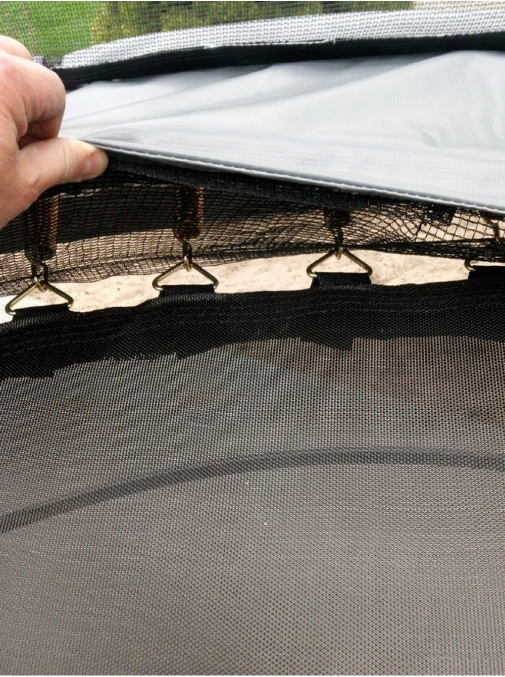 Якщо ви вибираєте страхувальну сітку Deluxe, ви вибираєте не лише оптимальну безпеку, але і високу якість. Кільця із скловолокна згори і знизу завжди тримають сітку ідеально натягнутою і щільною. Захисна сітка має високоякісну обробку, помітну дуже товсту піну навколо стойок, на які натягнута сітка.