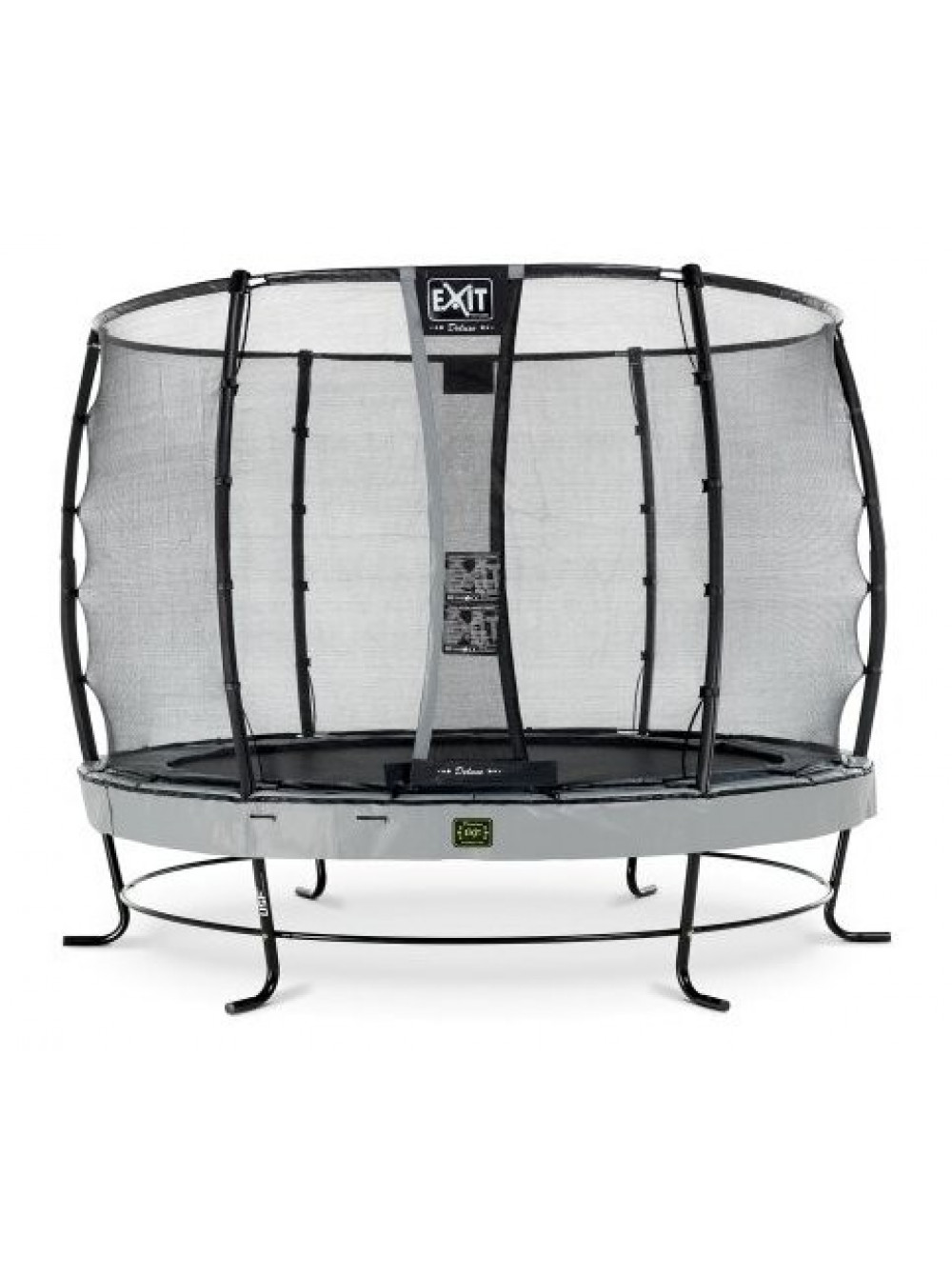 Батут EXIT Elegant Premium 305 cm сірий з сіткою безпеки Deluxe - це високоякісний круглий батут, продукт найвищого класу, кращий з серії батутів Elegant із захистом на пружинах сірого кольору і сірою спідницею. Він безпечний, красивий, дуже зручний, має супер міцну раму і легко збирається.