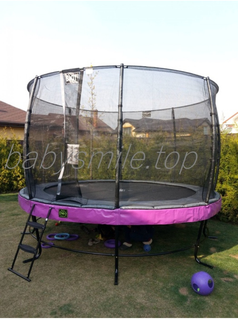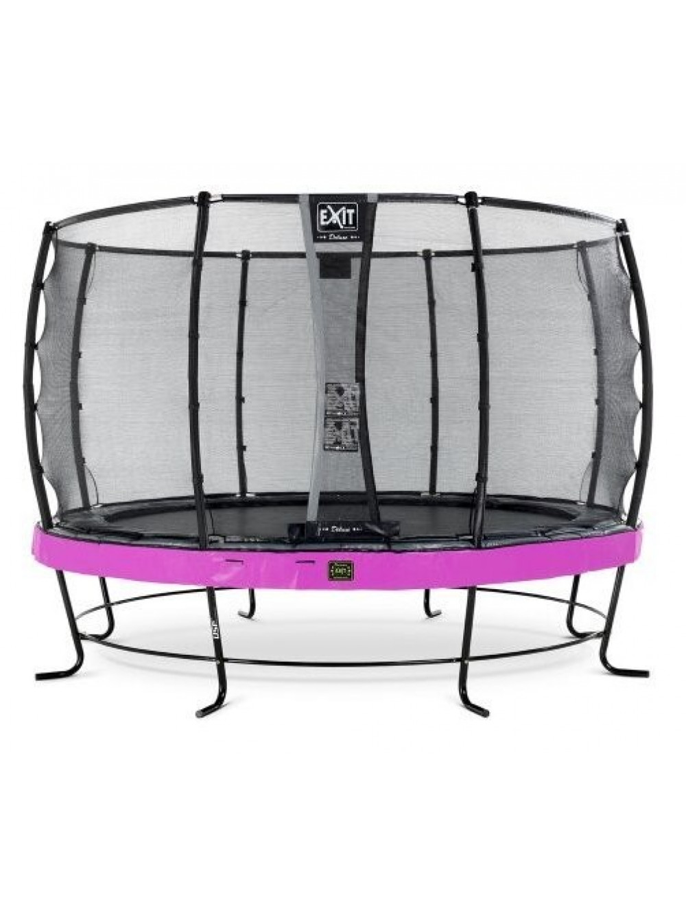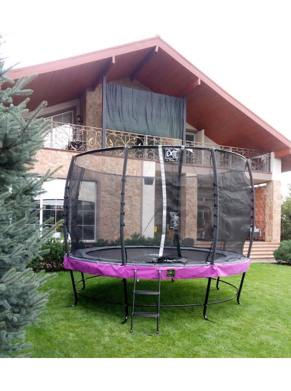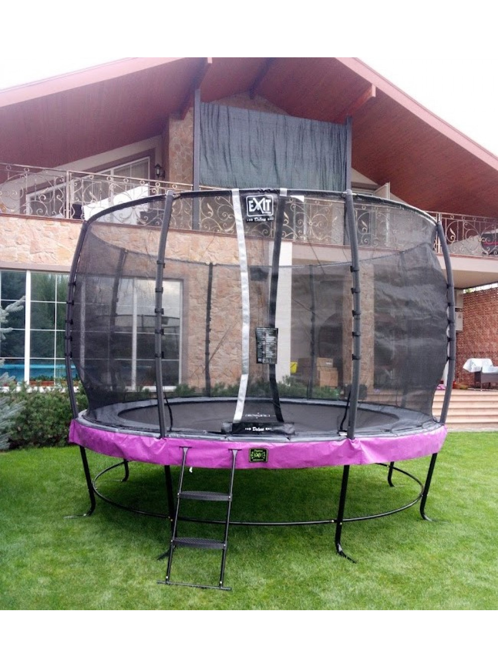 Батут EXIT Елегант Преміум 366 см бузковий з сіткою безпеки Deluxe - це високоякісний круглий батут, продукт найвищого класу, кращий з серії батутів Елегант із захистом на пружинах сірого кольору і фіолетовою спідницею. Він безпечний, красивий, дуже зручний, має супер міцну раму і легко збирається.